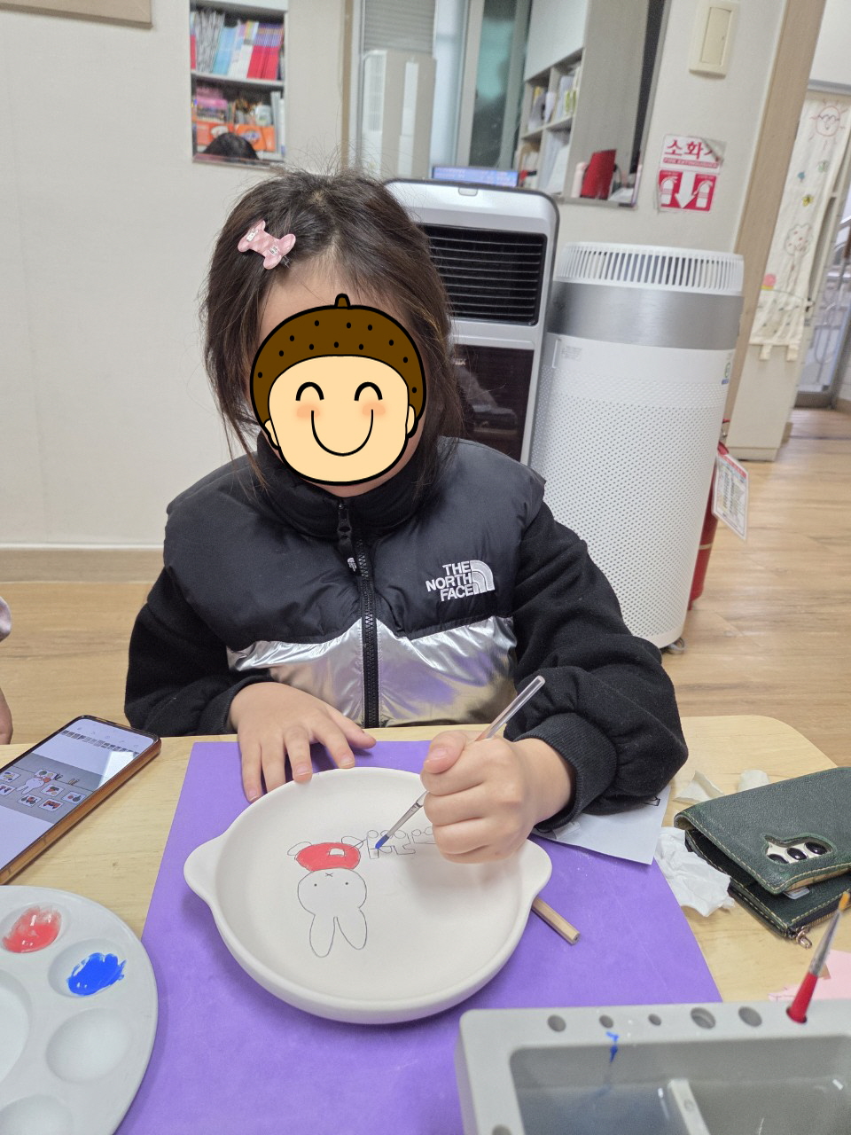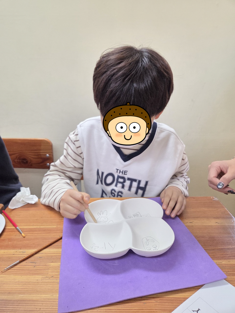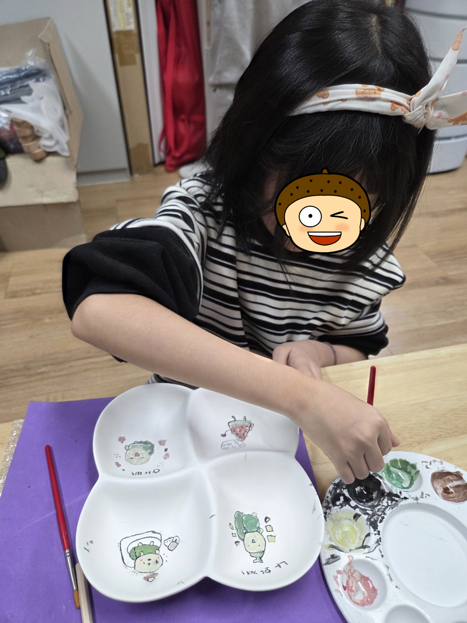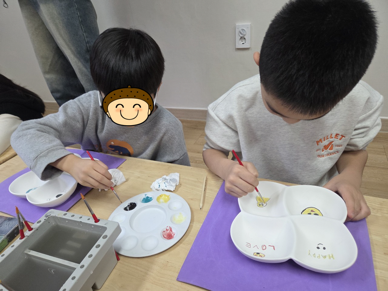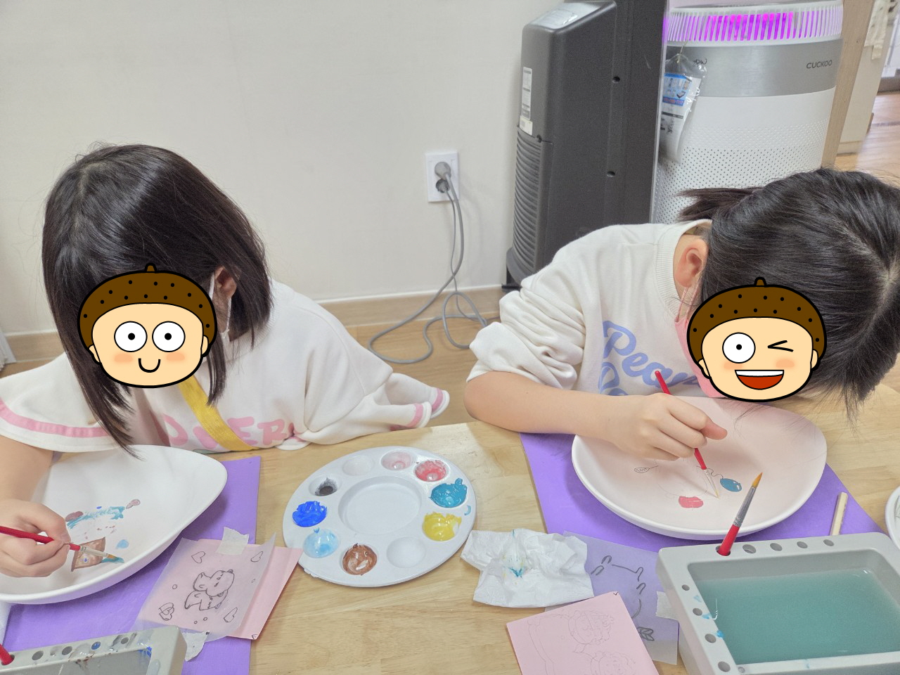 포슬린 아트 체험으로 캐릭터 4구 도자기 그릇, 얼굴 도자기 그릇, 입술 도자기 그릇 만들기와 아크릴공예 체험으로 나만의 키링 만들기, 도어벨 만들기 체험을 하였습니다!