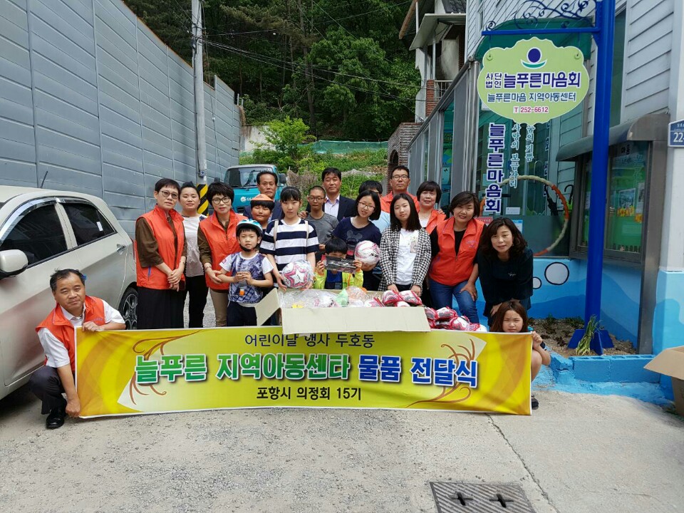 포항시의정회 15기 회원들은 늘푸른마음지역아동센터에 체육용품 ( 100만원 )을 기탁해 주셨습니다
