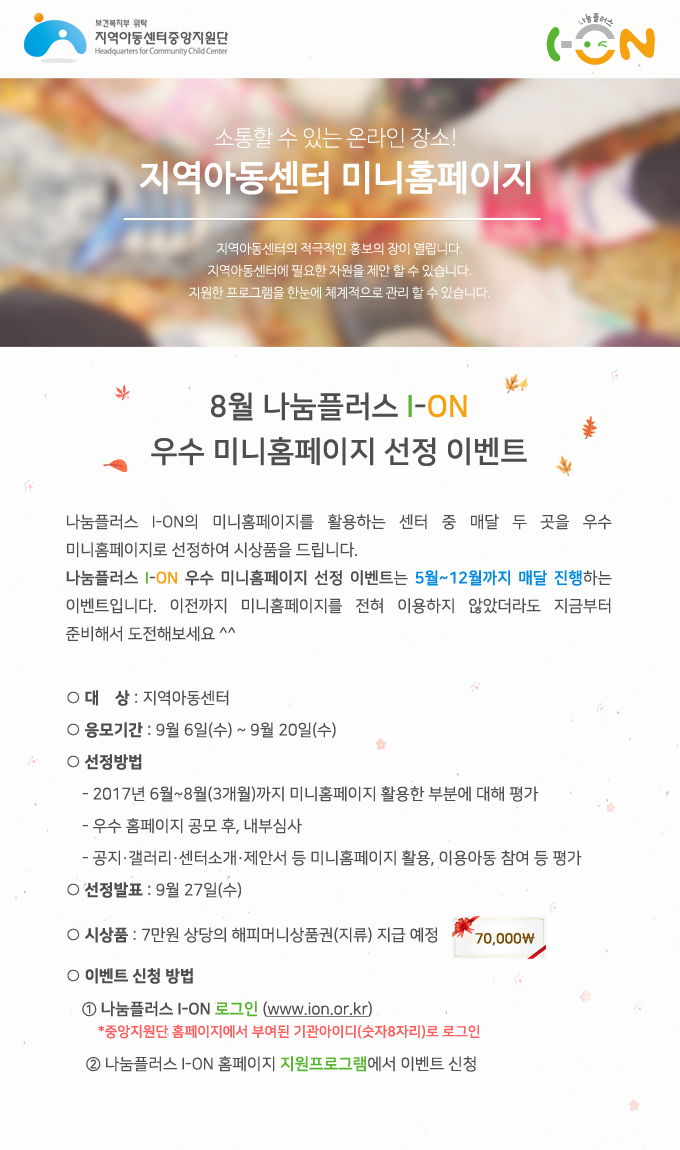 [프로그램] 8월 나눔플러스 I-ON 우수 미니홈페이지 선정 이벤트