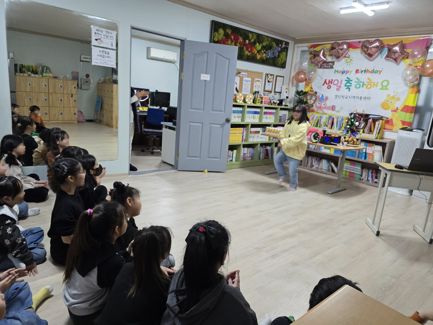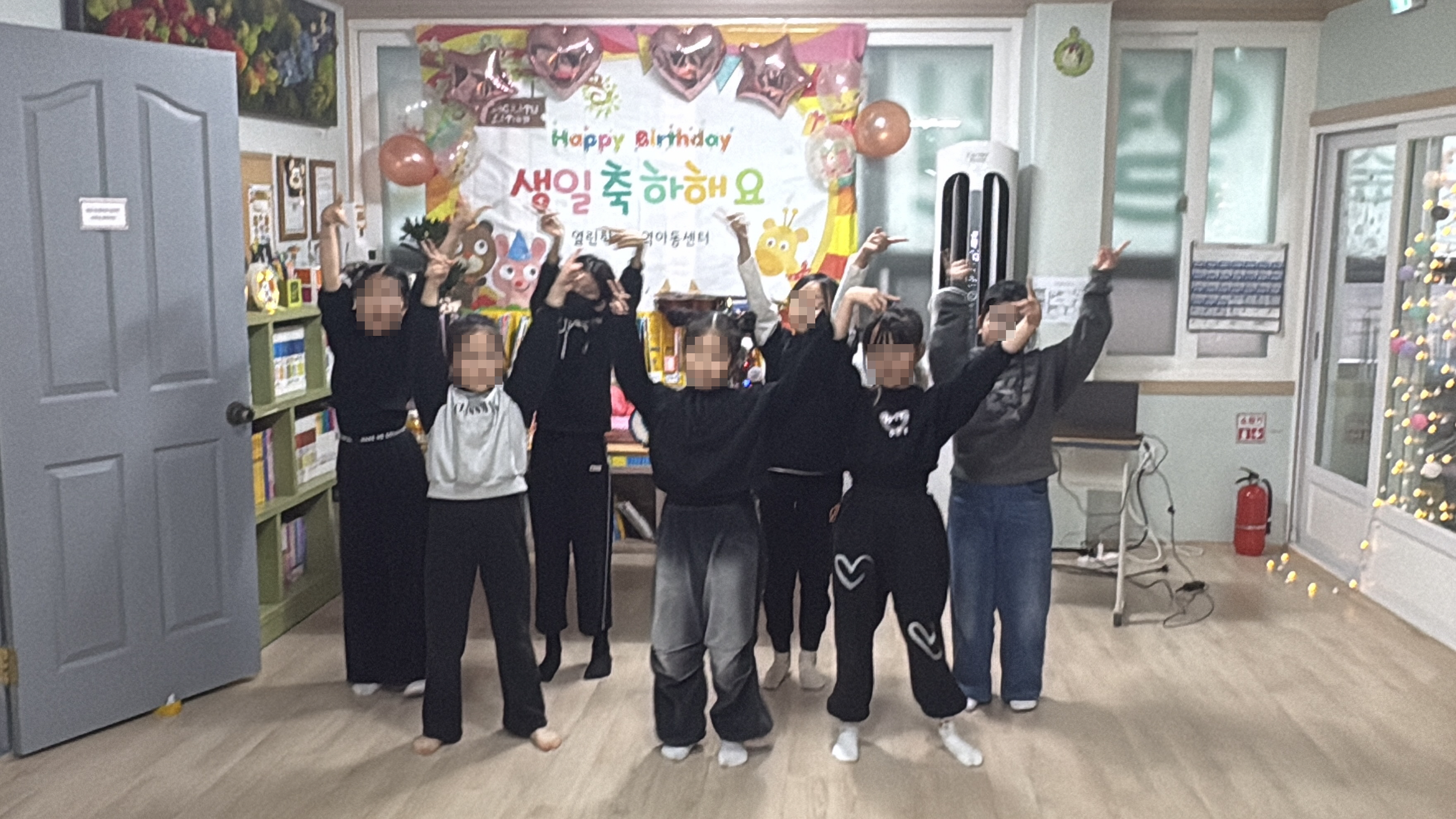 4분기 생일자(박*준, 박*연, 채*우, 조*연, 김 *리, 황*빈, 노*용, 강*슬) 를 위한 축하파티 생일축하노래를 불러주며 '당신은 사랑받기 위해 태어난 사람~'