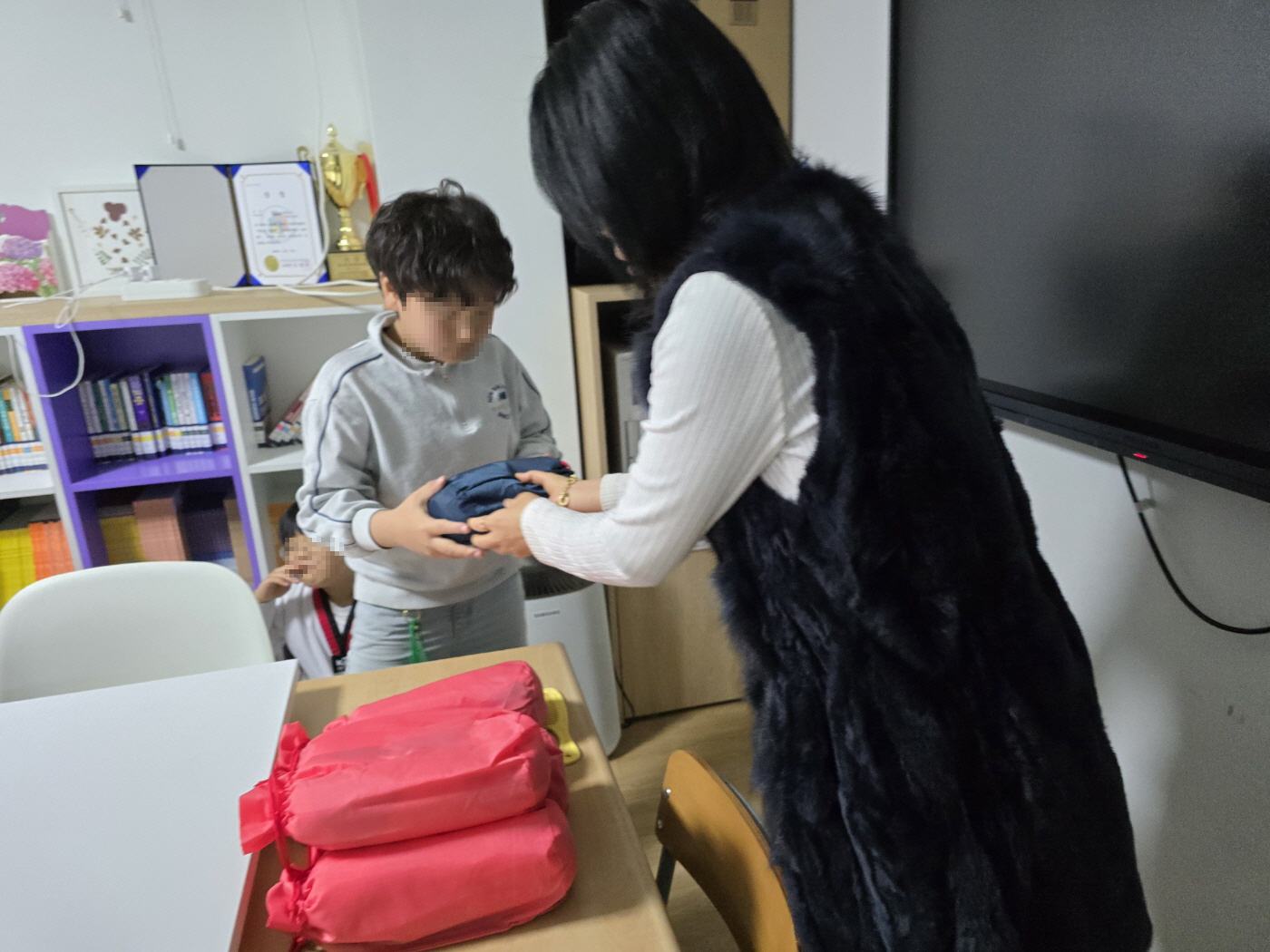 크리스마스를 맞아 센터에서 준비한 선물을 모두 받으며 행복해 하였다