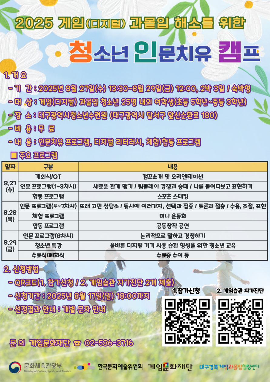 2025 게임(디지털) 과몰입 해소를 위한 청소년 인문치유 캠프(경상권) 참여 학생 모집 안내
