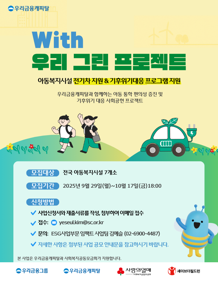 [홍보] (세이브더칠드런X우리금융캐피탈) 2025년 기후위기 대응을 위한 아동복지시설 지원사업 안내