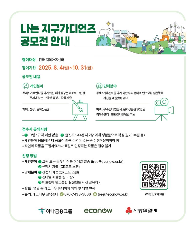[하나금융 지속가능한 미래와 나] 나는 지구가디언즈 공모전 참여자 모집 안내