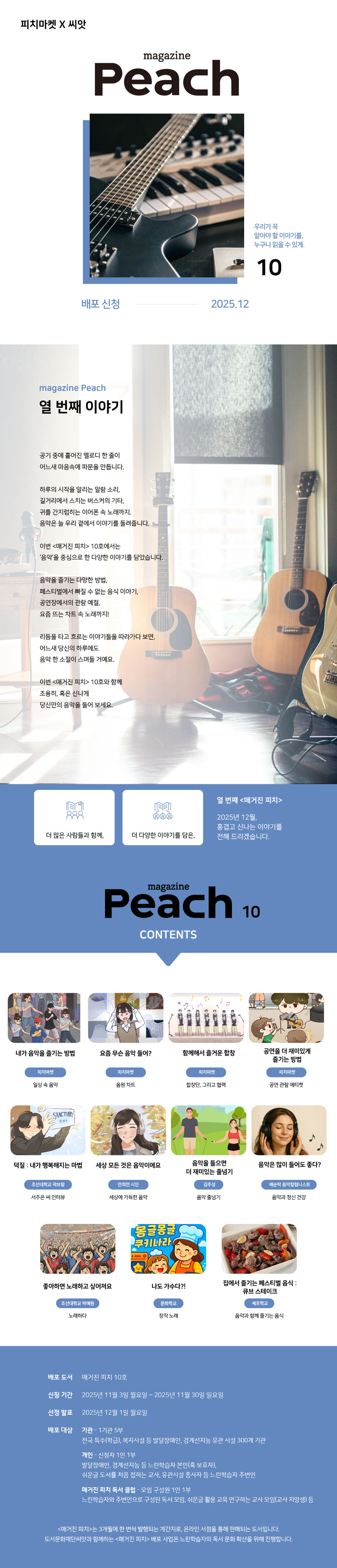 - 신청방법 : <매거진 피치 10호> 배포 신청 페이지(<-클릭) -> 배포 신청서 작성