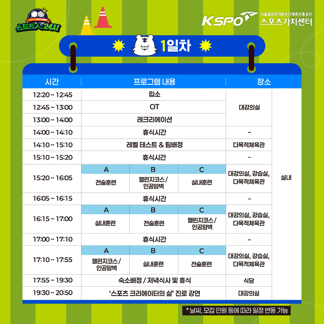 스포츠 활동 뿐만 아니라 '스포츠 크리에이터의 삶'이라는 주제로 진로 강연도 준비했으니 많은 참여 부탁드립니다.