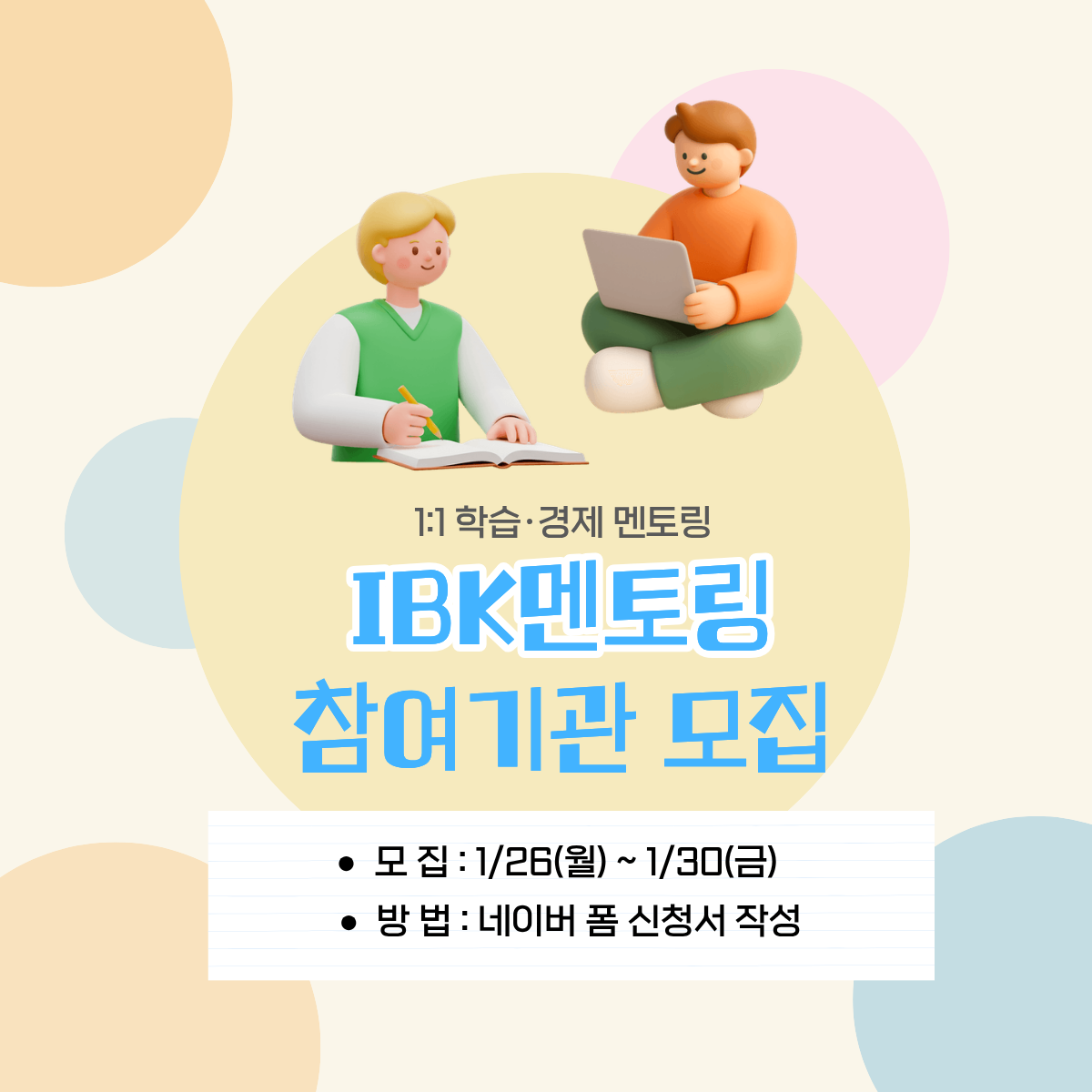 2026년 상반기IBK멘토링 참여기관을 모집합니다.
