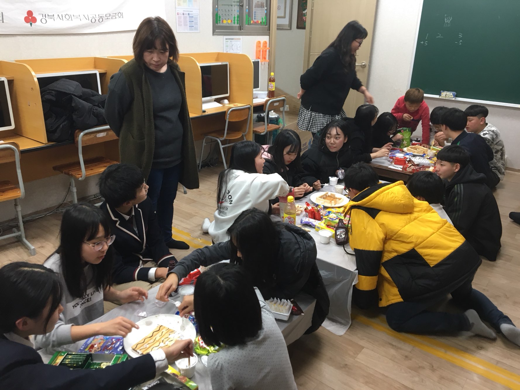 야간보호 아동들과 함께 즐거운 과자집 만들기를 했어요.
