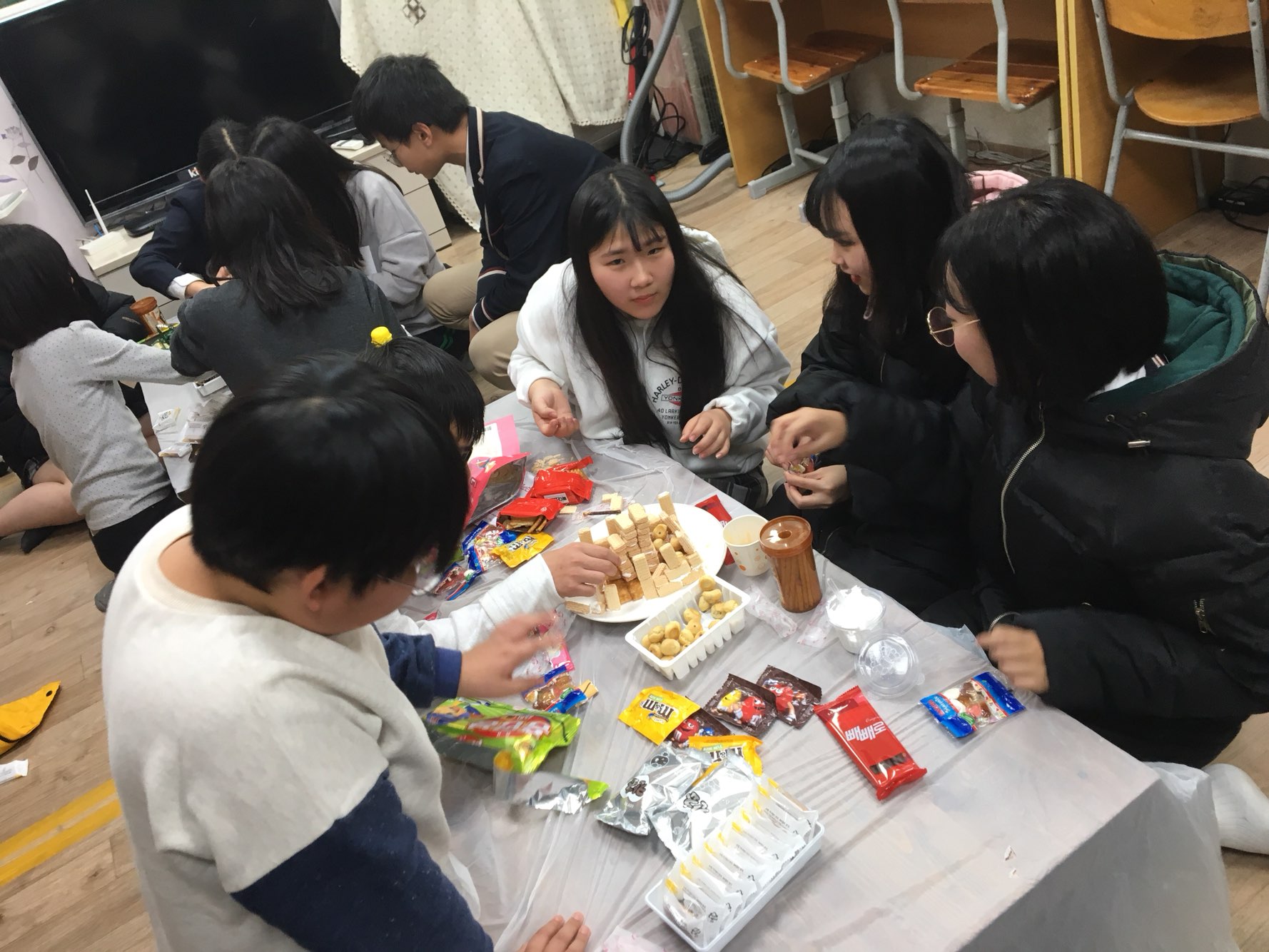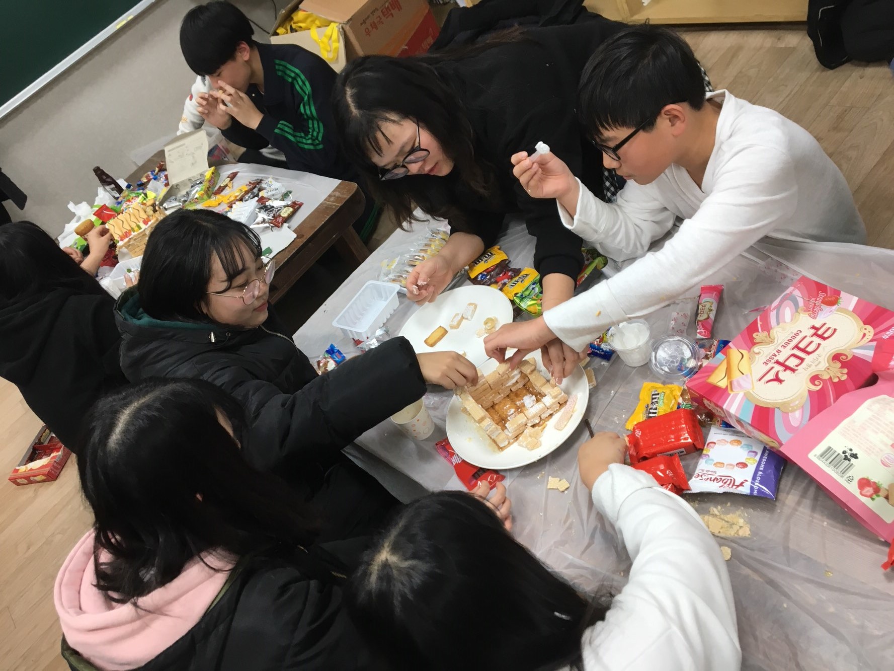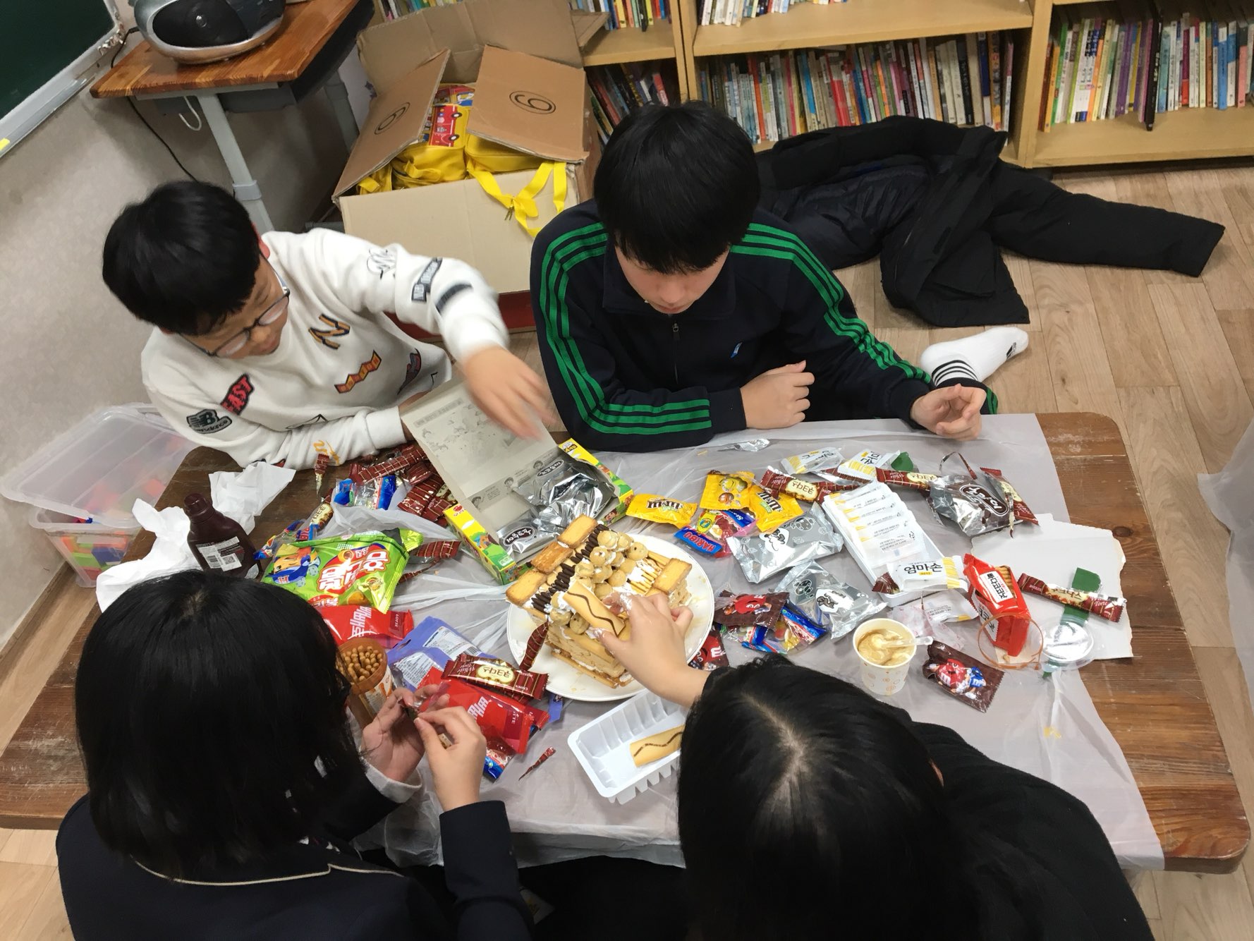 조원들끼리 협동하고, 다른 조와 과자를 서로 나눠주기도 하면서