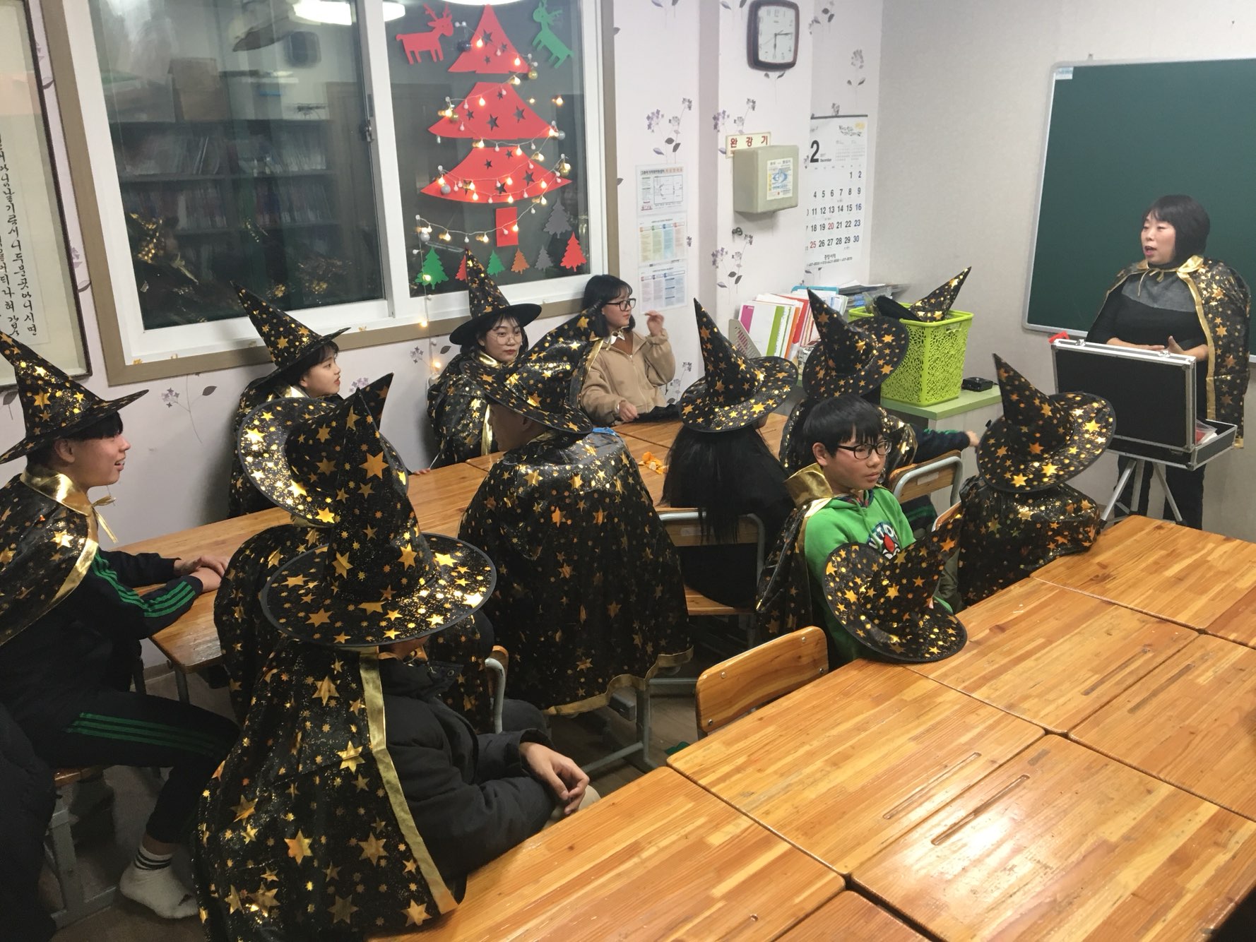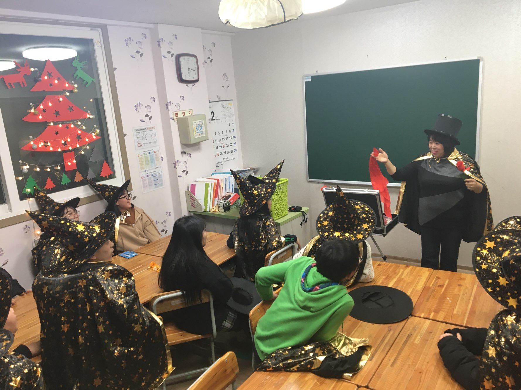 야간보호 아동들과 함께 특별 강의로 교육마술 선생님께서 오셨어요.