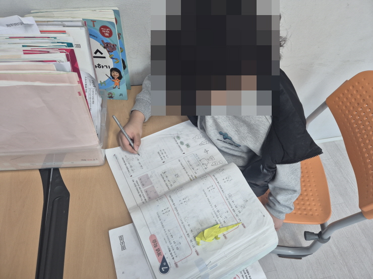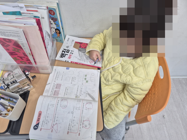 2학년 남자아이는 오늘 공부에 집중하기가 어려워 문제를 푸는 데 어려움을 느꼈다. 옆에서 학습을 도와주기도 했지만 잘 되지 않아 오늘은 학습량을 살짝 줄여 공부를 했다. 줄어든 학습량에 기분이 좋았는지 금세 문제를 풀어내기도 했다.