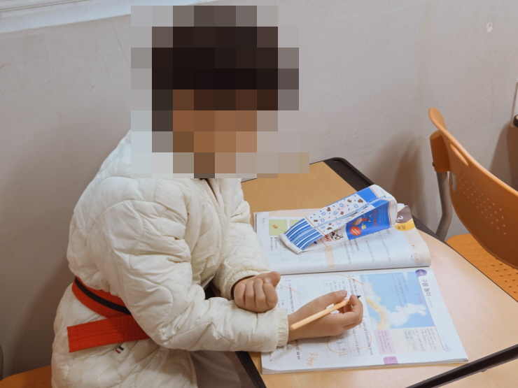 국어는 자세하게 살피는 부분의 어휘를 조금 어려워했다. 6학년 남자아이는 틀린부분도 잘 고치기도 하였지만, 힘든 하루였다고 말하기도 했다. 다른 6학녀 ㄴ남자아이는 분수의 나눗셈 부분의 문장제 문제를 어려워했다.