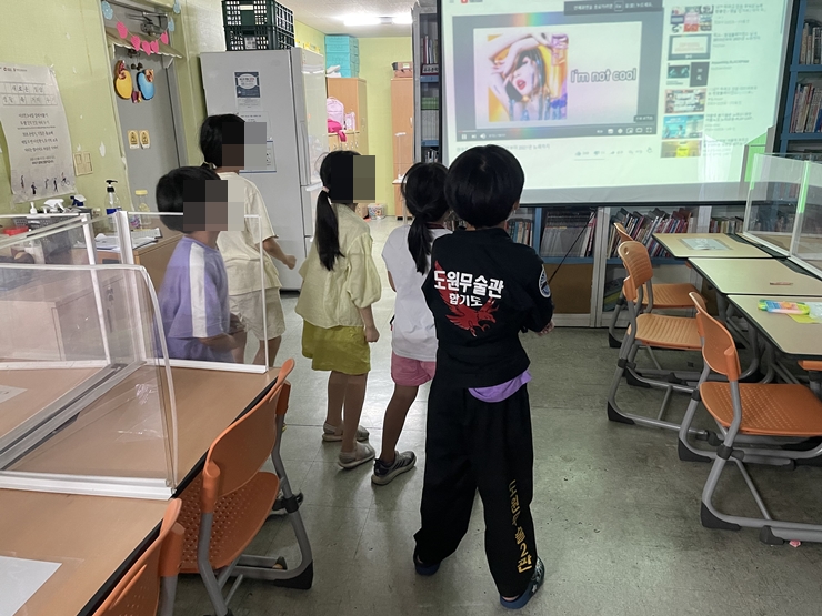 이번 활동시간에는 아이들이 잘 모르는 곡이 나올때 마다 집중력이 흐트러지기도 하였지만 서로가 서로에게 집중을 하자고 얘기를 하며 활동에 진지하게 참여하였고 춤을 잘 모르는 아이들은 막춤을 추는 것도 재밌다며 활동에 참여하도록 도왔습니다.