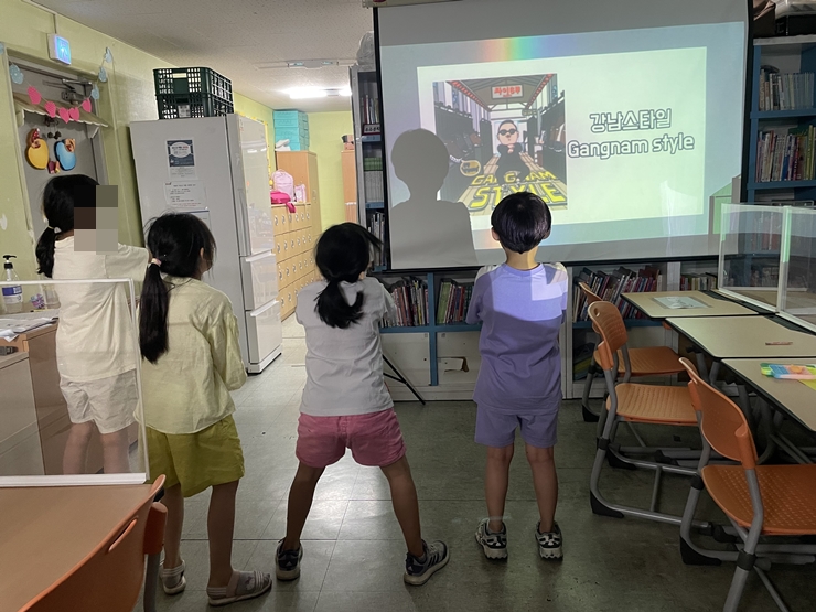 많은 아이들이 노래에 맞는 춤을 제대로 몰랐지만 자신만의 개성이 담긴 춤을 추었고 몇몇 아이들은 많은 춤을 알았기에 친구들 앞에서 춤을 추면서 따라할 수 있게 도와주었습니다.