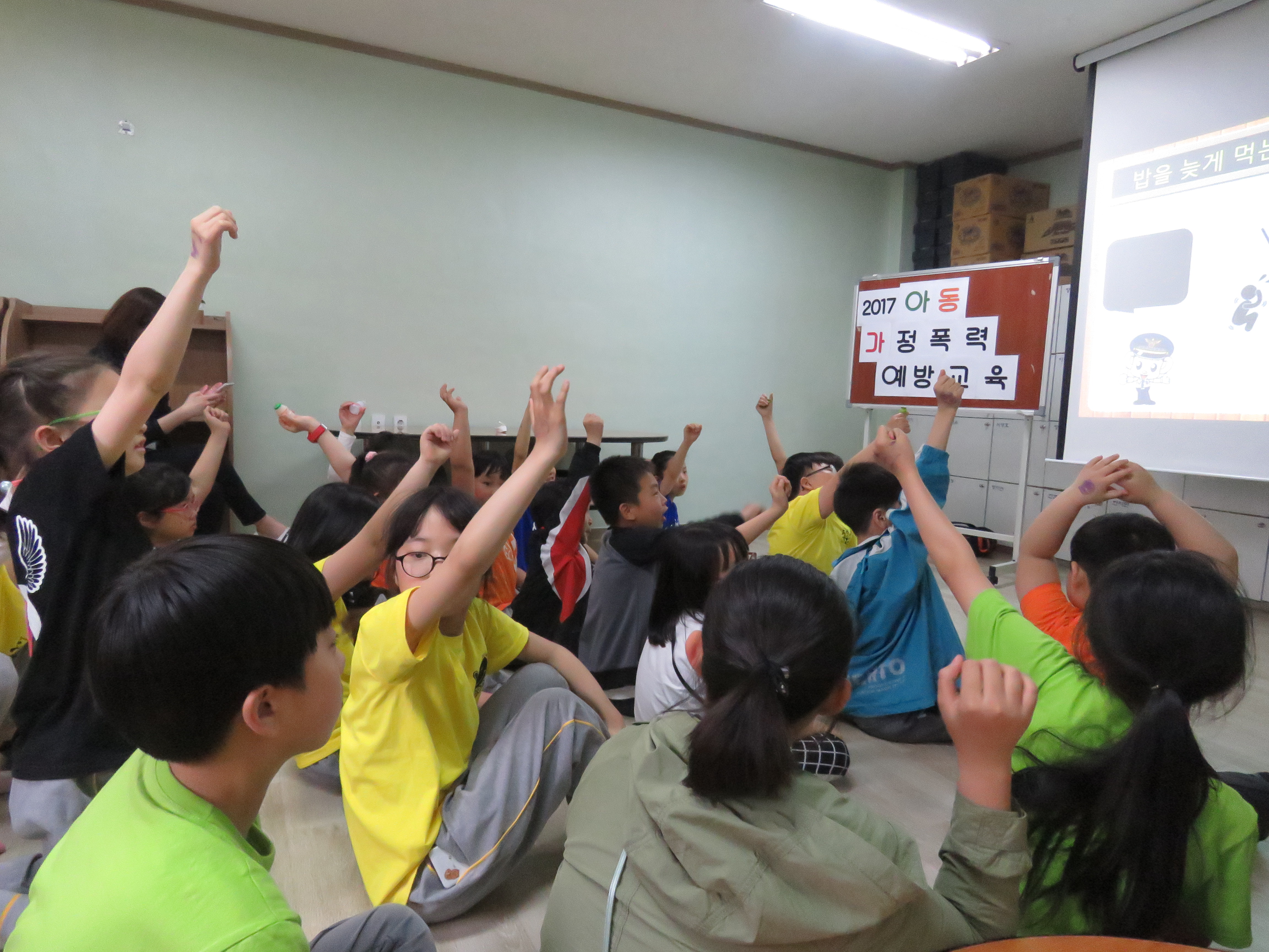 아동학대예방교육시간입니다. 열심히 수업에 집중하는 아동의 모습
