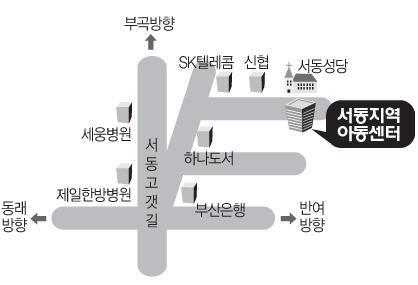 서동지역아동센터 | 부산광역시 금정구 서금로 24-1 1,2층 (서동) [지도보기] Tel : 051-526-6279 Fax : 051-526-6179 E-mail : sdwill@naver.com