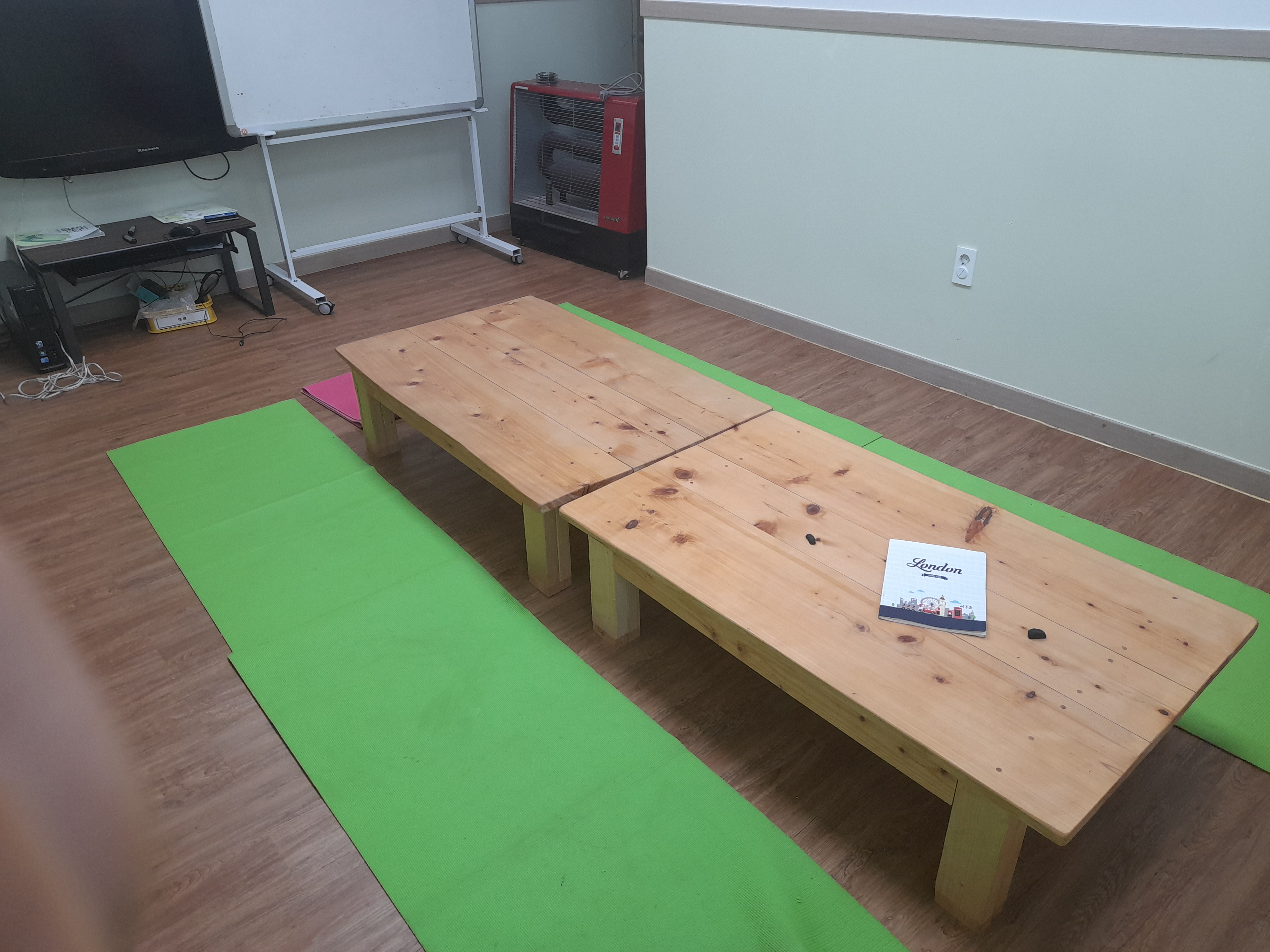 현재 요가매트를 깔고 난방기로 공기를 데우다보니 답답하고 탁한 환경에서 학습을 하고 있는 아이들이 너무 안스럽고 미안하기만 합니다.