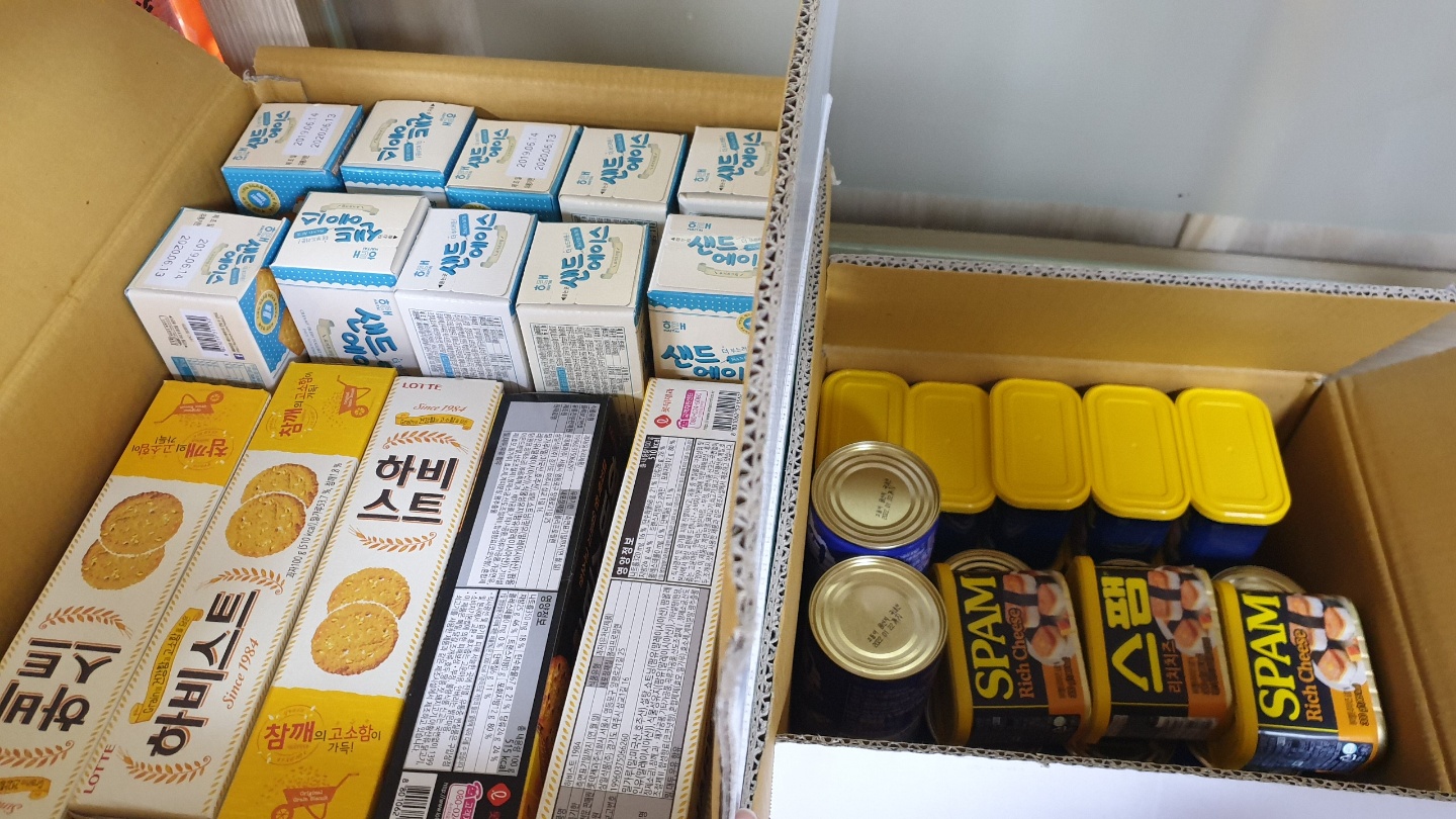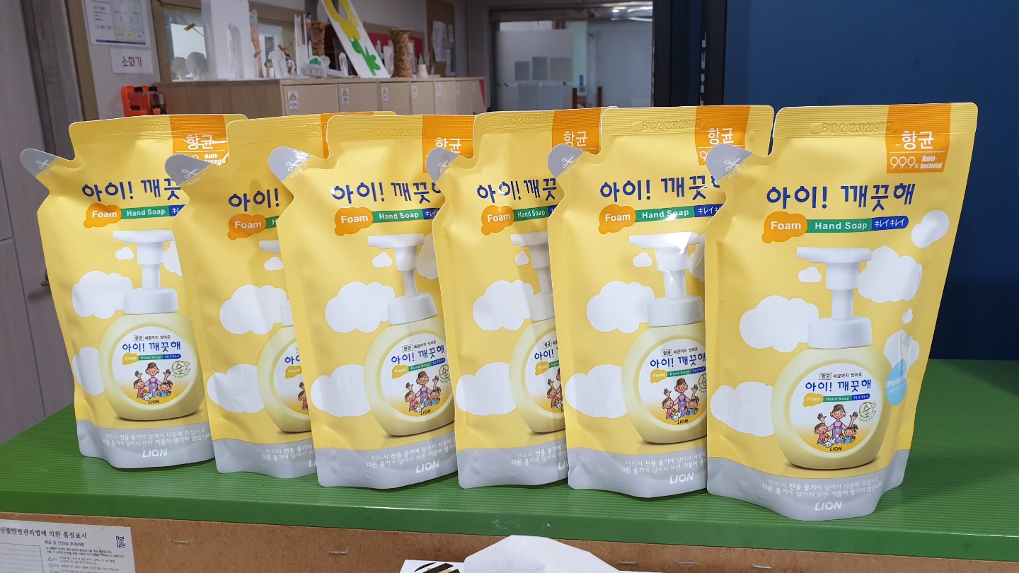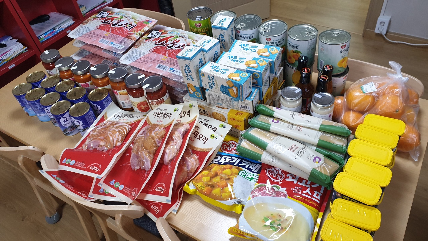 코로나 19로 만나지 못하는 우리 친구들을 위해 식료품과 세정제를 지원했어요