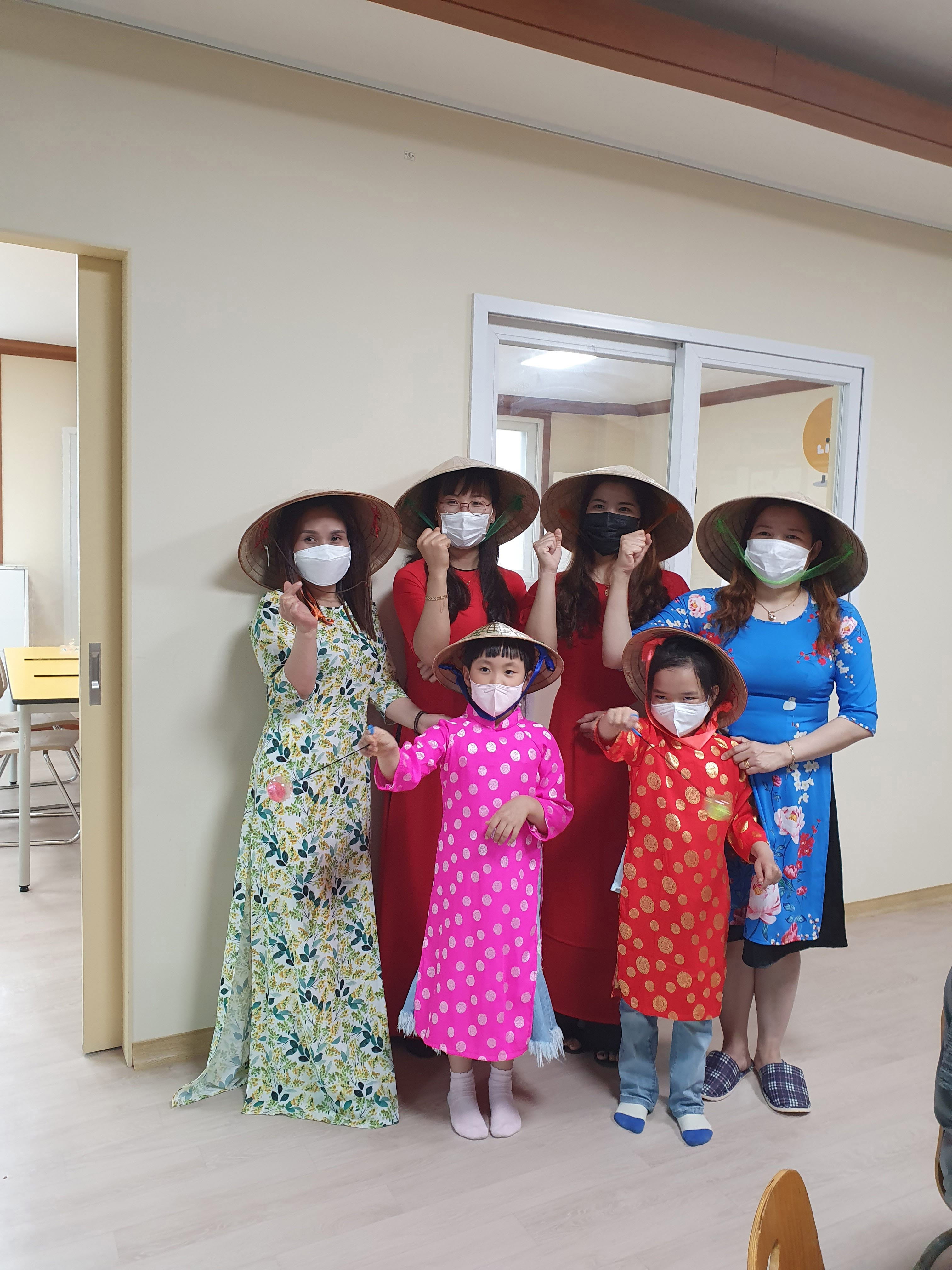베트남 전통옷과 함께 모자, 돈(화페)에 관해 배우고 전통 놀이또한 체험하는 시간을 가졌답니다.