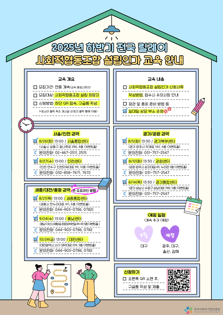 [아동권리보장원] 하반기 전국 릴레이 사회적협동조합 설립인가 교육 안내