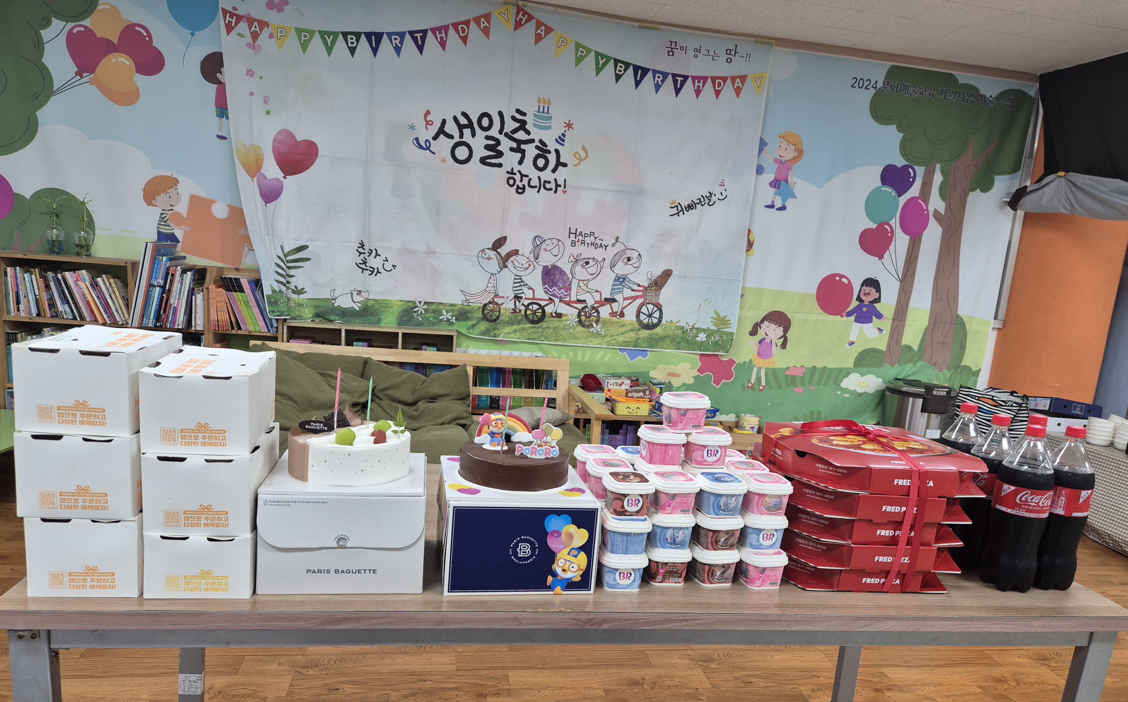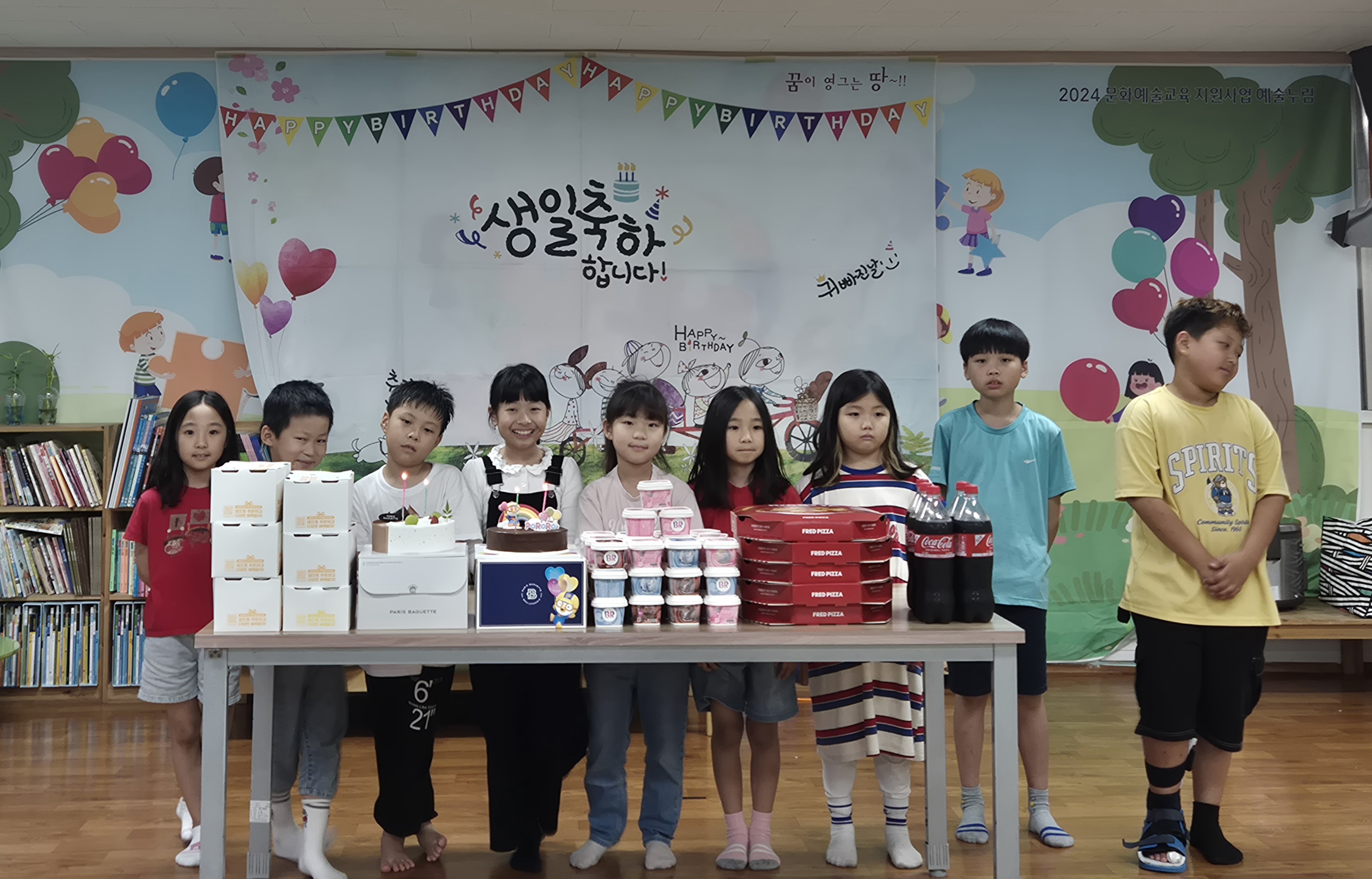 7월~9월 생일파티^^ 맛있는 피자,치킨, 케잌과 선물~~~ 사랑하는 친구들의 생일을 축하합니다. ^^