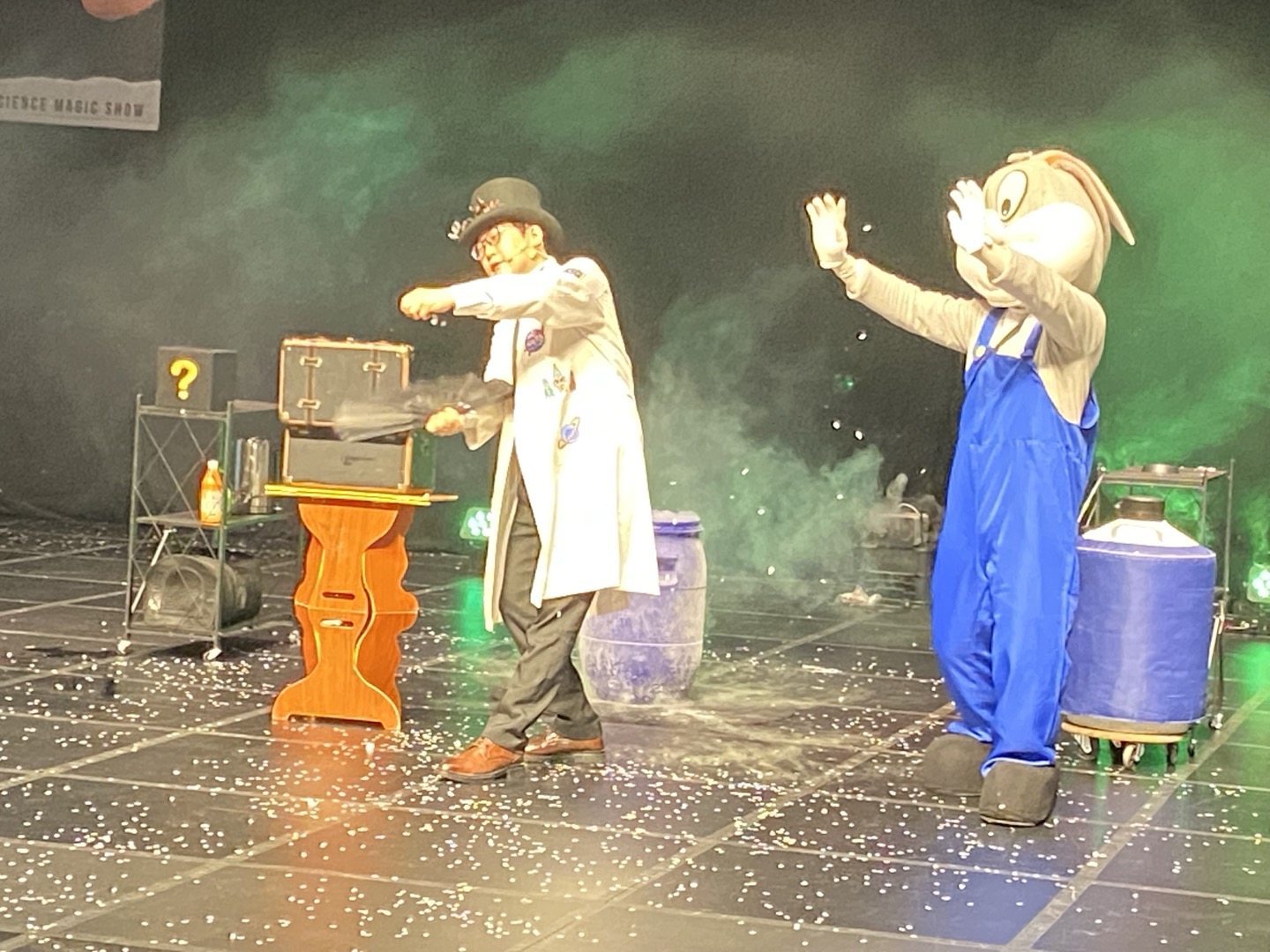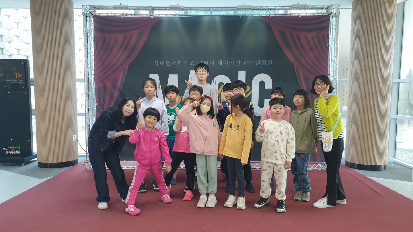 “마술사 제이티의 과학실험실”을 관람하면서 제이티의 과학 실험에 대한 활동 하나하나에 집중을 했습니다. 과학의 원리를 이용하여 “공중부양”실험에서 제이티의 마술을 도와줄 친구를 뽑는데 뽑히지 않아 아쉬워하면서도 실험활동에서 테이블 위에 누워 있었던 아이가 제이티가 마술을 부리자 공중으로 뜨는 모습을 보며 너무 신기했다는 것과 요즘 유트브 채널에서 많이 나오는 “과산화수소분해실험”으로 일명 “코끼리 똥만들기”로 불리는 이 실험은 큰 비이커 통에서 과산화수소에 주방세제와 촉매제를 넣자 폭발하면서 분출하는 장면이 정말 대단했으며 멋있었다고 했습니다.^^