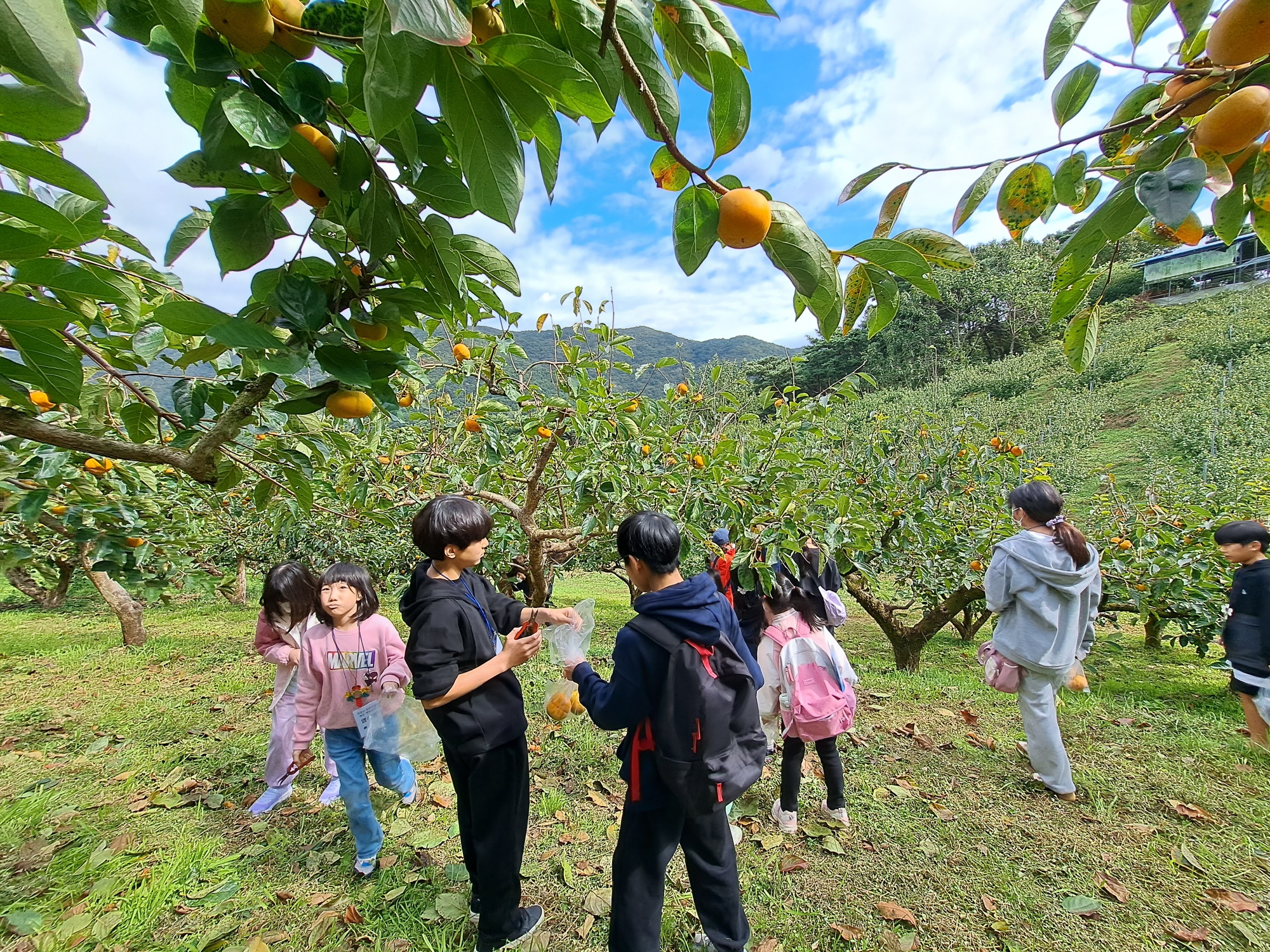 가을의 풍성함을 느끼기 위한 감따기 체험과 신선한 산 속 공기를 느끼며 자연의 감사함을 아는 숲 체험으로 우리 한별친구들도 자연속에 묻혀봅니다~