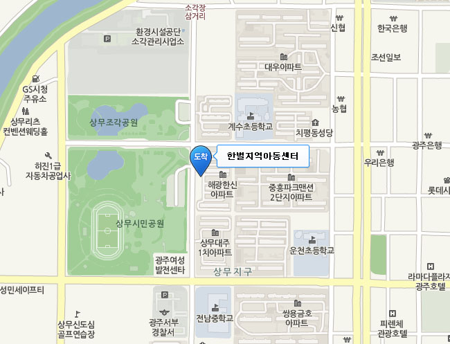 한별지역아동센터 광주광역시 서구 상무공원로 112 상가동 302호(치평동 해광한신아파트) 062-385-0099