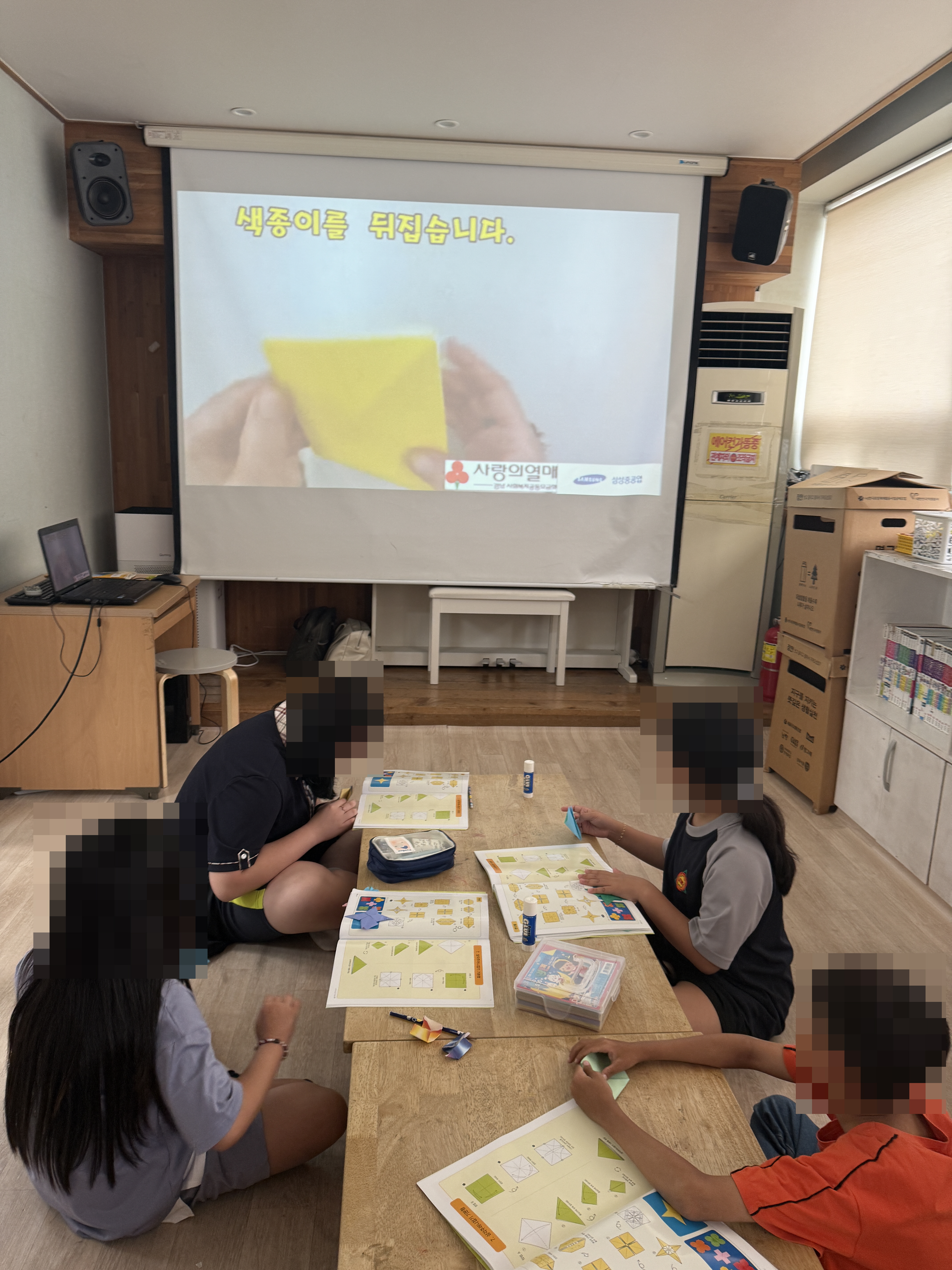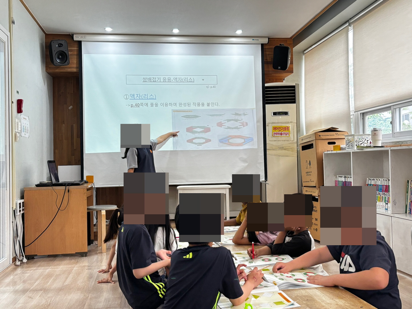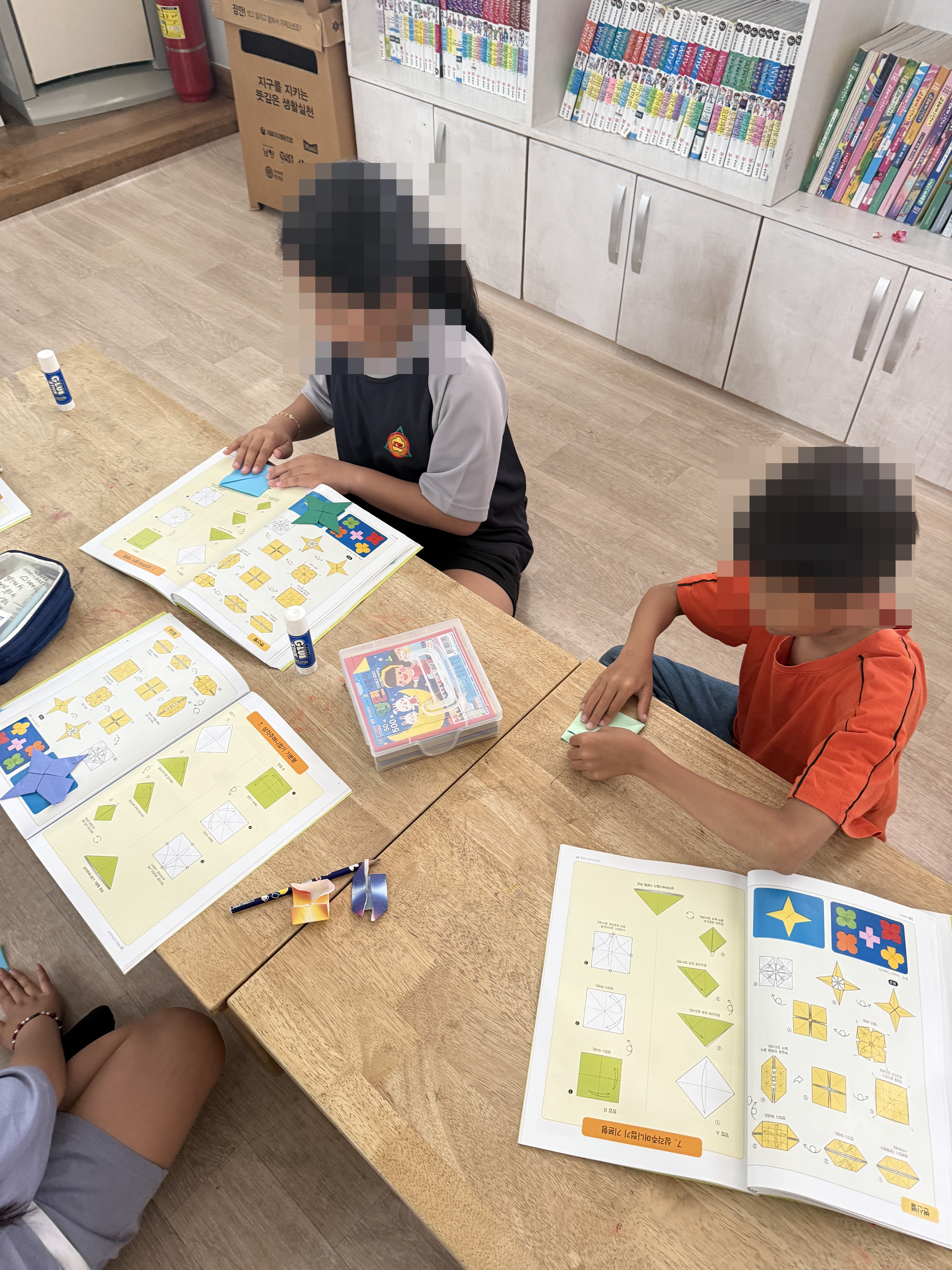 오늘 종이접기 3급반은 쌍배접기 기본형-액자리스접기, 2급반은 쌍배접기 기본형-나비1접기를 했습니다.