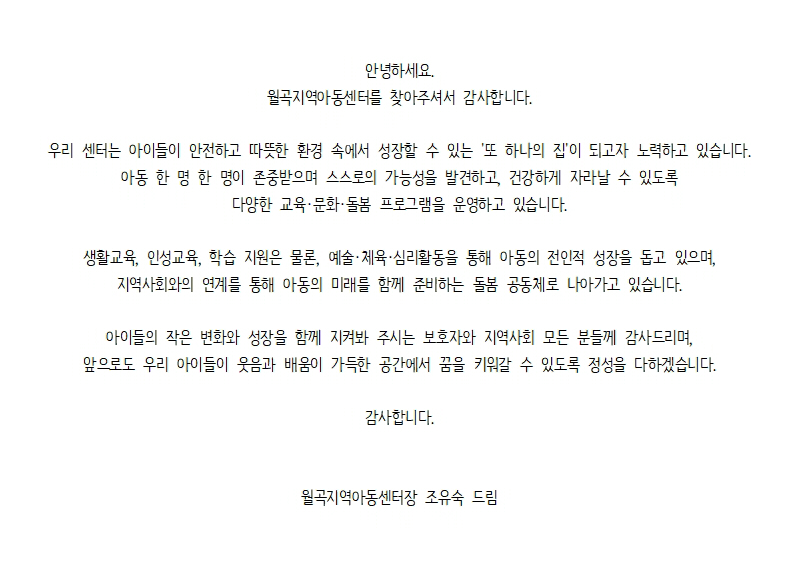 월곡지역아동센터에 오신 걸 환영합니다!