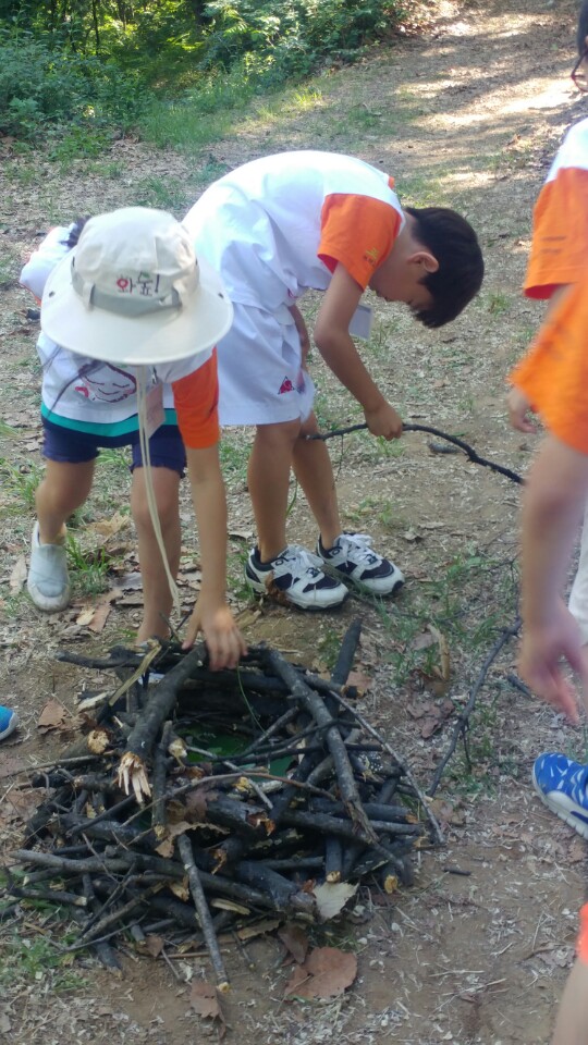 생명보험사회공헌위원회, 한화생명에서 후원하시고, 녹색교육센터에서 주최한 숲체험 프로그램에 선정이 되어 우리 아이들 상반기 동안 숲에서 귀한 활동을 하였다. 나무이름, 풀이름... 그 동안 그냥 스쳐 지나갔던 것들이 이름이 있으며, 벌레를 물리치는 풀과 아카시아 꿀 맛도 보았다. 벼락맞아 쓰러진 나무타는 시간은 스릴 있는 시간이었다. 보슬비 내리는 중에도 체험은 아이들이 더 신나했던 기억이다. 이 자리를 빌어 숲체험을 이끌어 주신 채송화 샘 께 감사드린다. 떡갈나무로 가면도 만드는 시간을 가게 해주셨고 줄타기도 넘 재미있는 시간이었다.