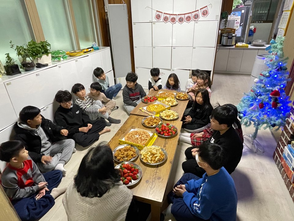 이번 크리스마스 이브 파티에서는 센터에서 준비한 과자 세트와 치킨, 피자,과일 등을 풍성하게 준비하여 아이들과 함께 즐거운 시간을 보냈습니다