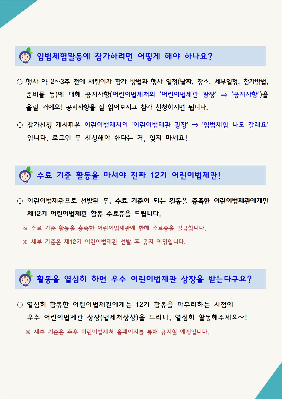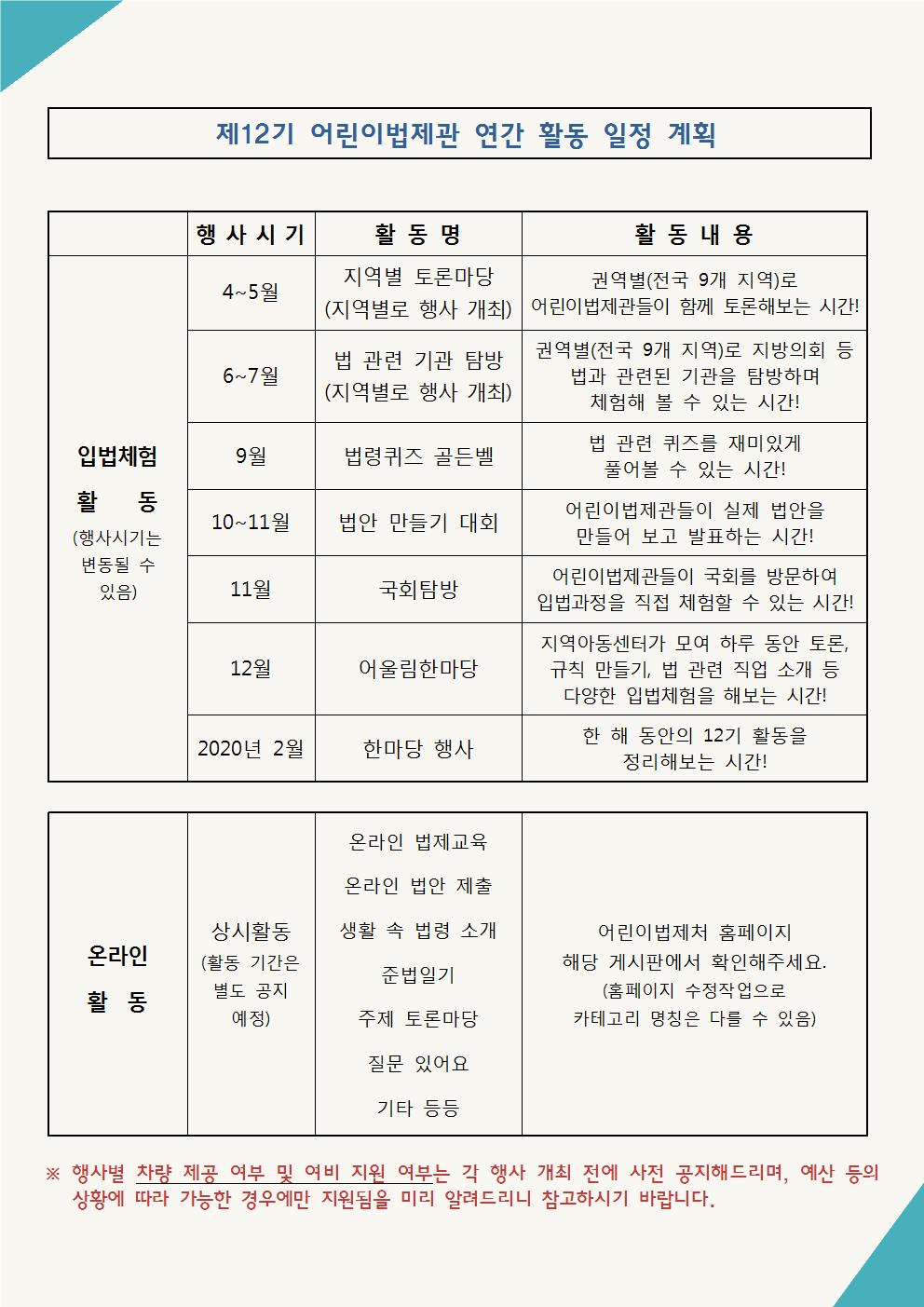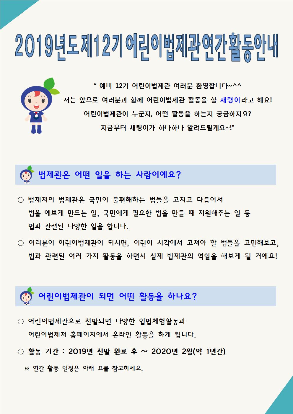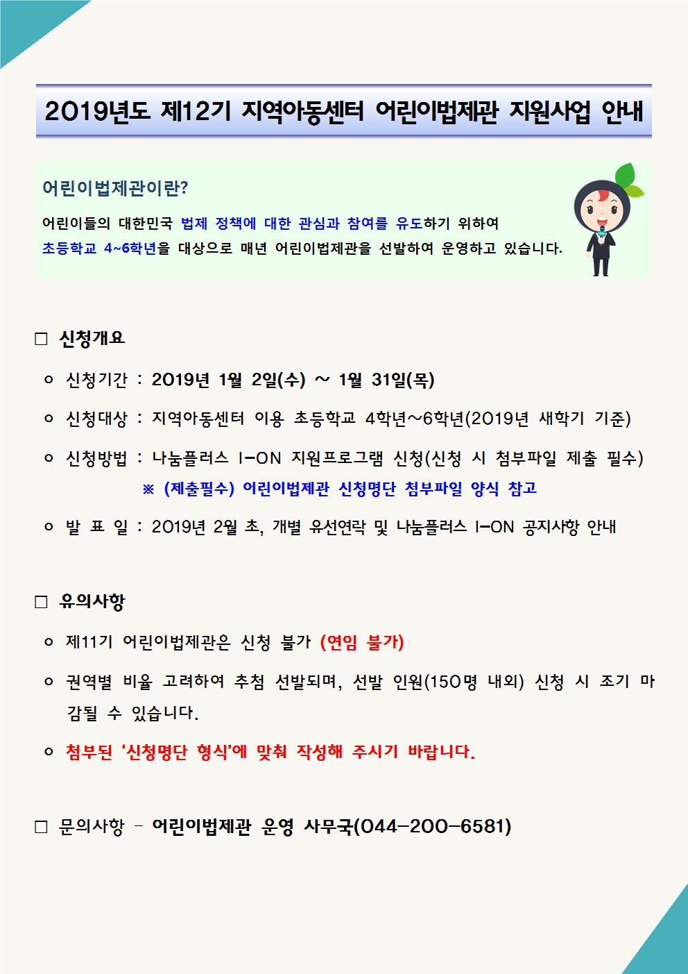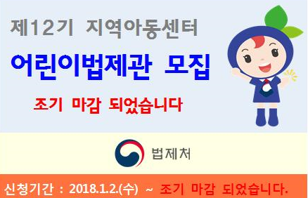 [프로그램] 2019년 제12기 지역아동센터 어린이법제관 모집 안내