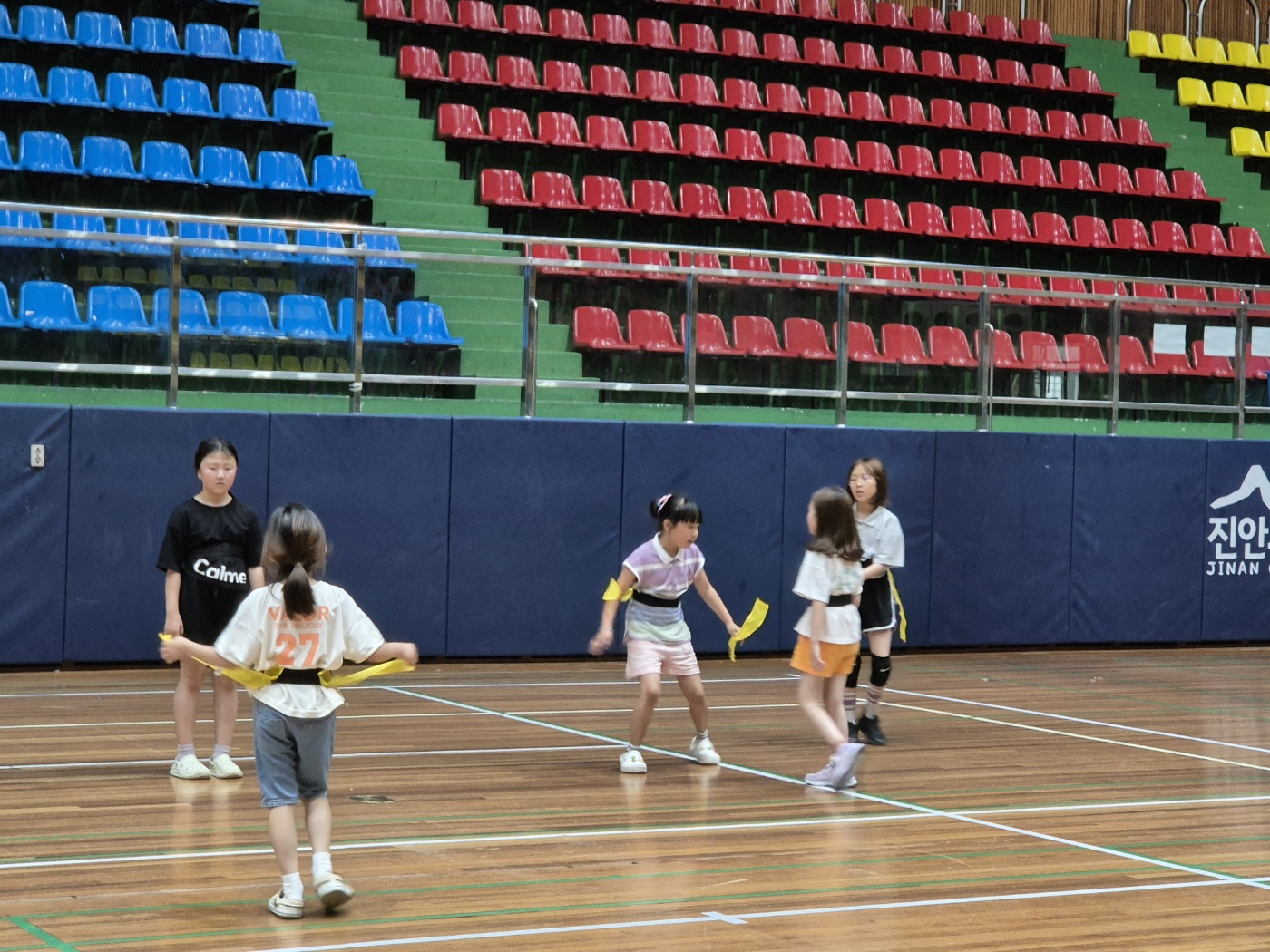 꼬리잡기와 피구 게임에 대한 설명과 함께 안전하게 놀이할 수 있도록 규칙에 대해 설명하고 진행했다. 아동들은 꼬리잡기와 피구 게임에 적극적으로 참여했으며 특히 신*슬과 최*주는 뛰어난 신체 능력과 전략적 사고, 긍정적인 태도를 보였다. 반면 저학년인 박*하는 처음에는 어려움을 겪었지만, 꾸준한 연습과 노력으로 점차 발전하는 모습을 보였다.