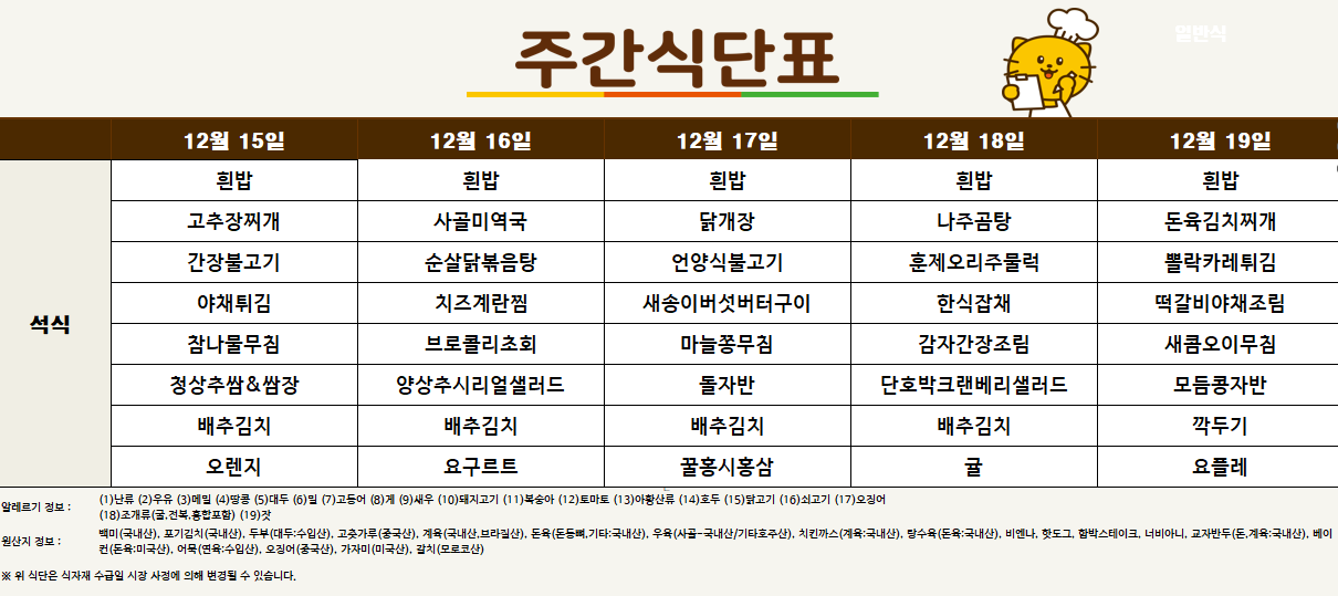 ** 12/17 저녁급식은 특별메뉴로 제공합니다.