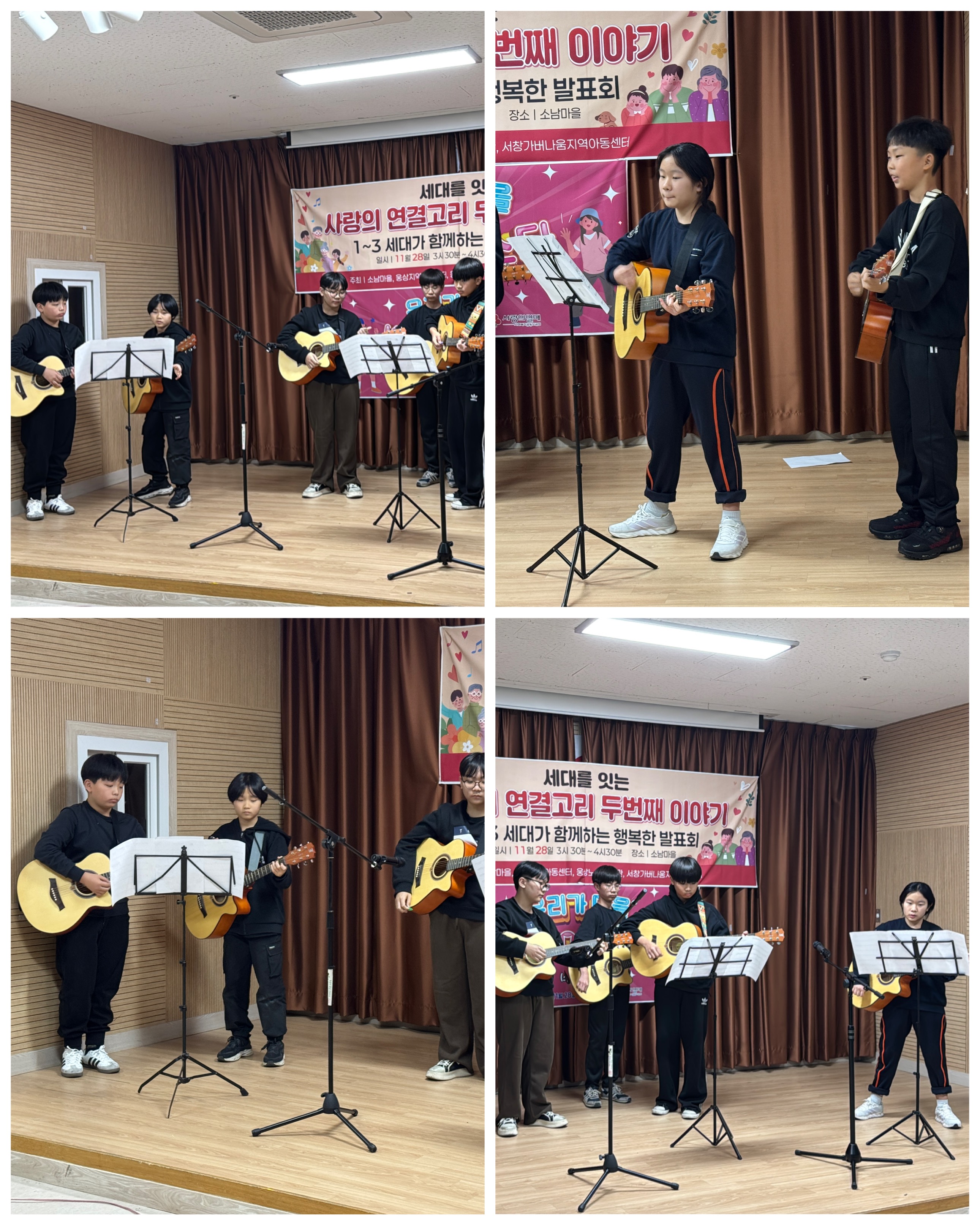 오늘 우리 센터 아동들이 소남마을 행사에서 그동안 열심히 준비했던 합창 2곡, 기타 연주 2곡을 선보였습니다!