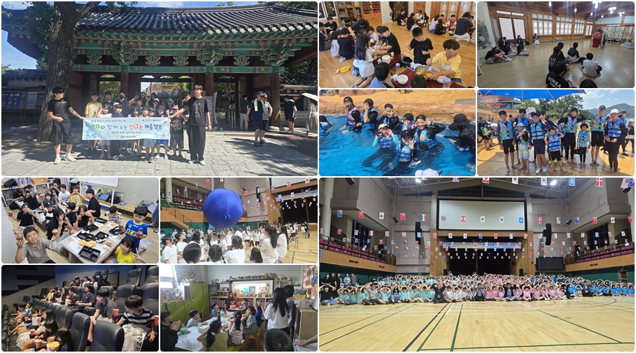 8월 여름방학동안 다양한 내부/외부 활동이 있었습니다. 1박 2일로 '역사와 함께 노는 신나는 여름캠프' 주제로 첫 날에는 전주 한옥마을에서 역사해설을 듣고, 비빔밥을 직접 만들어 먹은 뒤 전통 체험활동(탈춤, 매듭팔찌, 부채, 전통놀이)을 하였고, 둘째 날에는 나주 중흥골드스파에서 물놀이를 하며 즐거운 시간을 보냈습니다.