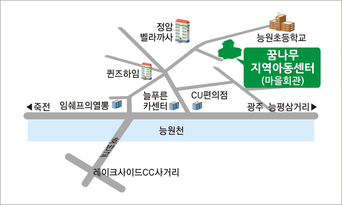 꿈나무지역아동센터 | 경기도 용인시 처인구 왕림로 36 2층 [지도보기]    Tel : 031-322-4481  Fax : 031-322-4482  E-mail : kkumch2019@naver.com