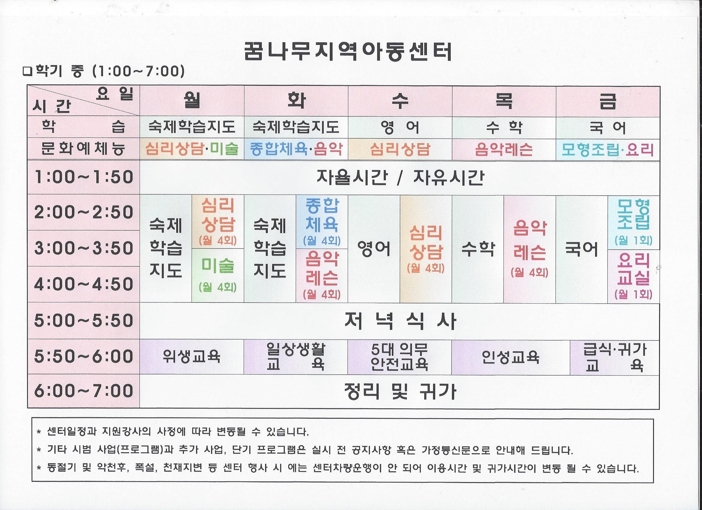 운영시간은 센터프로그램에 따라 조정될 수 있습니다^-^