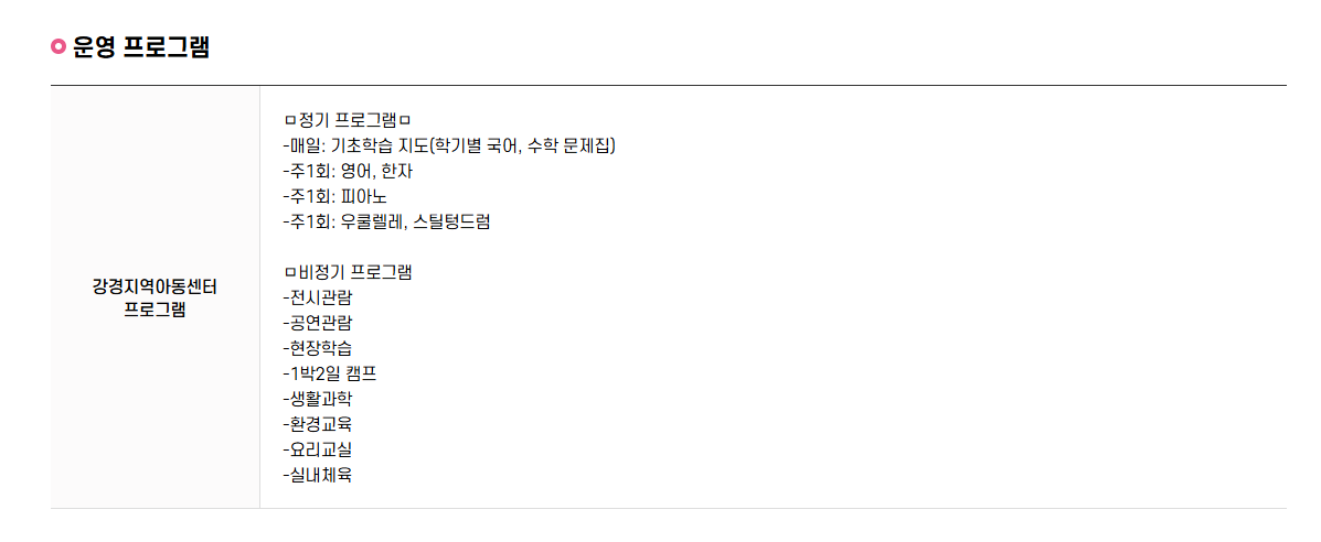 ㅁ 학기중 운영시간(월~금): 10:00~19:00, 무료, 급식 및 간식 제공, 등원 및 하원 차량지원