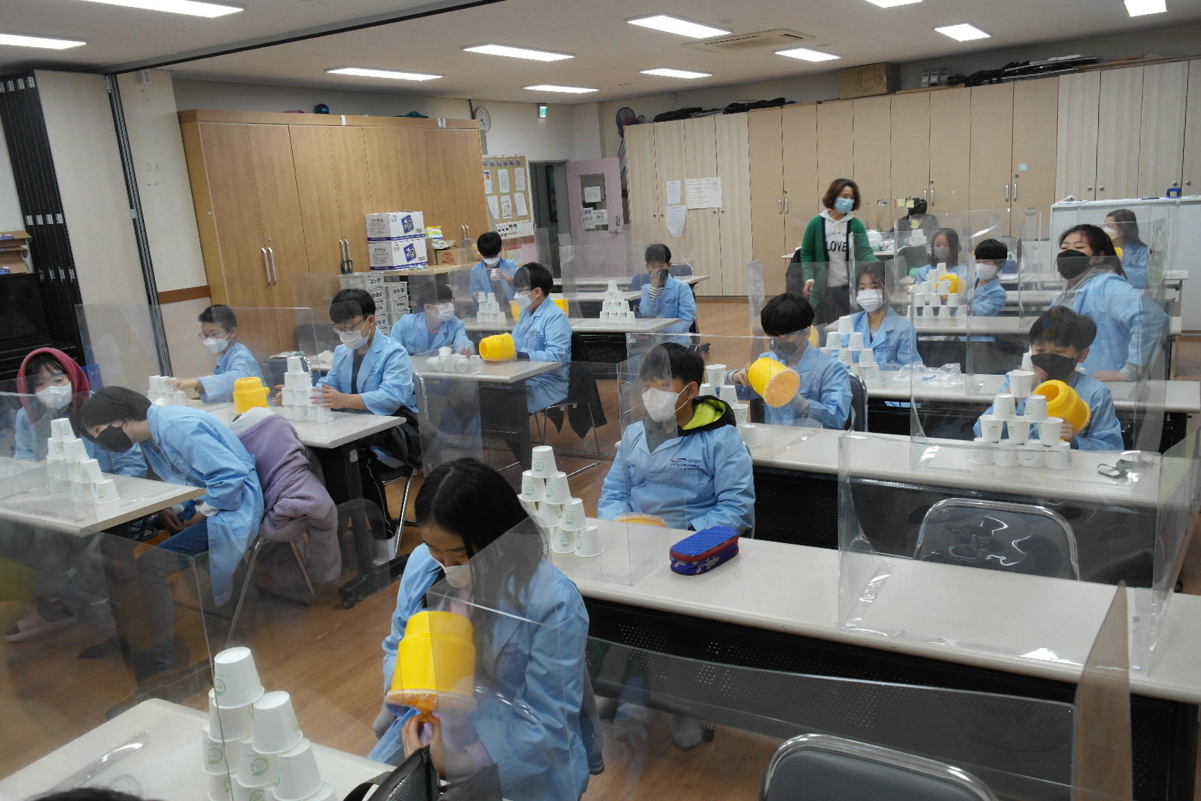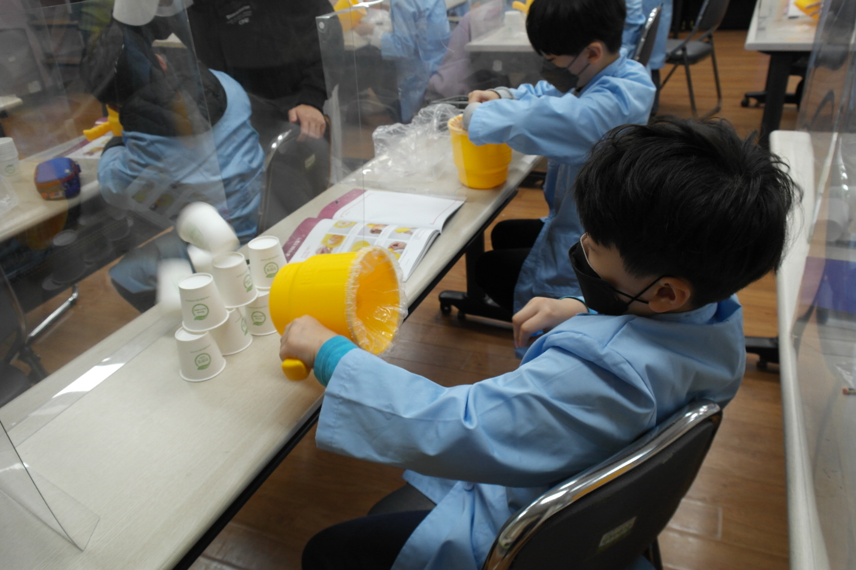 2021년 11월 19일에 진행한 삼성 SDI 푸른별과학교실 4차시 공기대포 만들기 활동입니다. 이번 차시에서 아이들은 공기 대포를 만들면서 고무줄을 튕기며 발생하는 탄성퍼텐셜 에너지의 운동에너지로의 전환의 개념을 직관적으로 학습하게 되었고, 또한 와류 현상에 대해 알아보면서 유체만의 독특한 운동 특성 또한 공부하게 되었습니다. 실험 과정을 통해 진행된 학습이어서 아이들이 지루해하지도 않으면서 다양한 물리법칙들을 몸소 알 수 있게 되어 매우 유익한 수업이었습니다.
