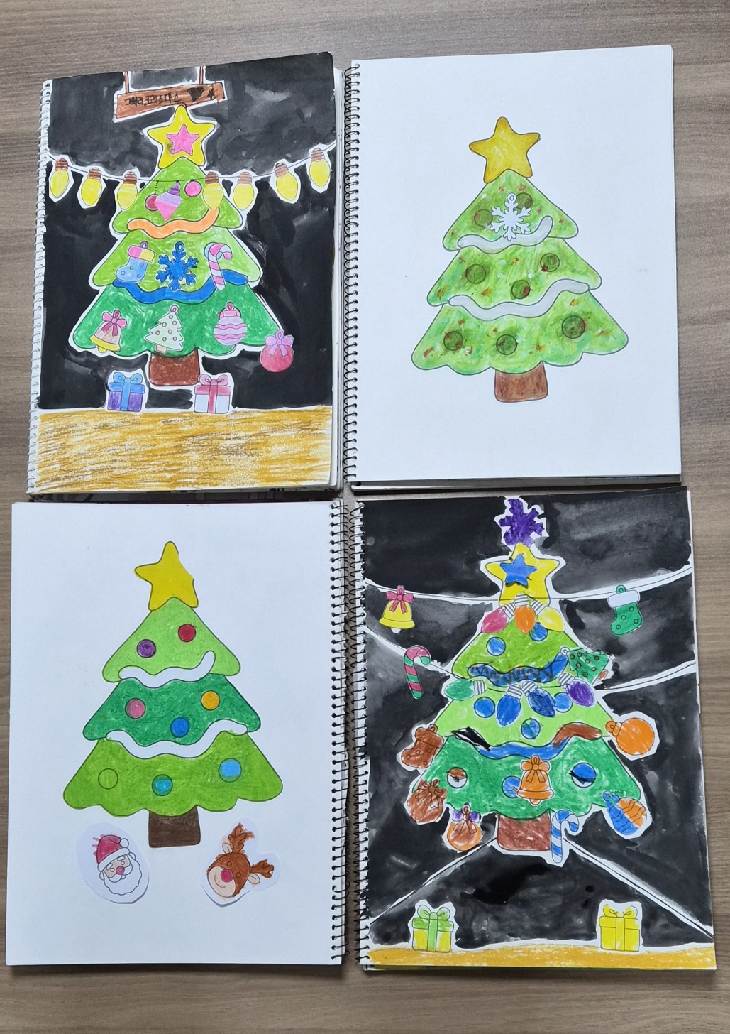 트리 도안 또는 입체 트리에 색칠 및 다양한 모양(별,트리,눈사람등)을
