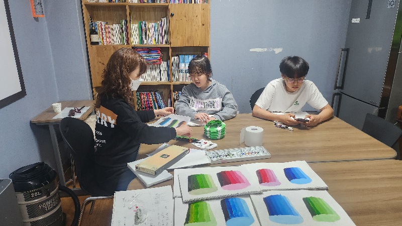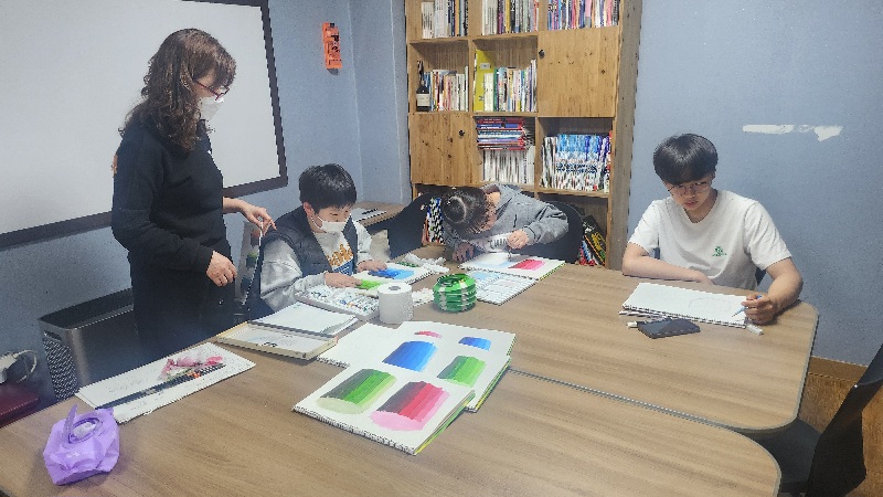 어두운 부분을 구분하여 채색하도록 지도를 해 주었으며,