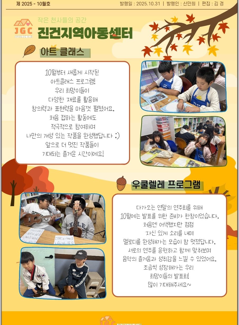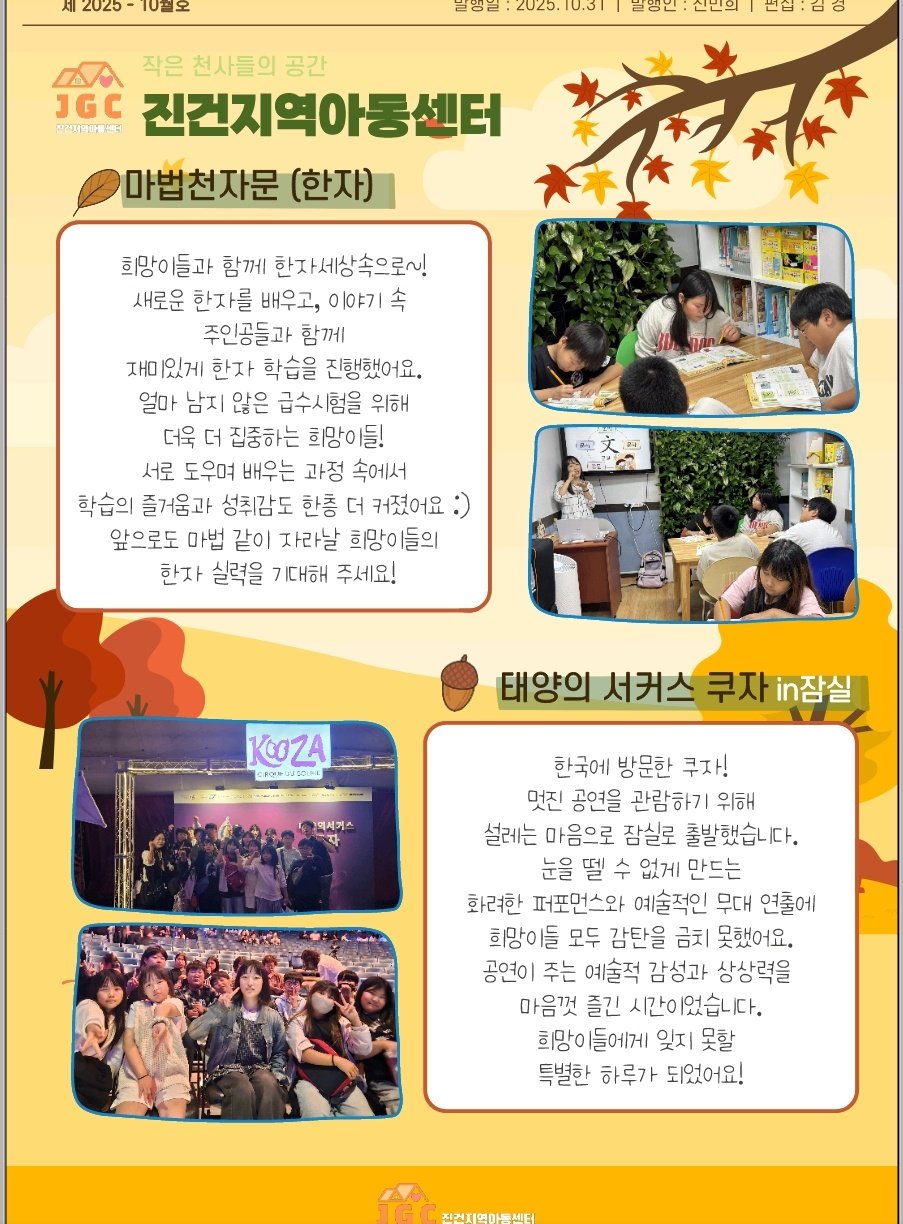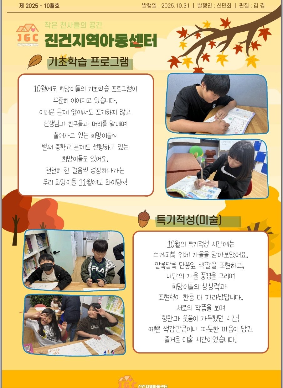 진건지역아동센터 10월달 소식지가 나왔습니다.