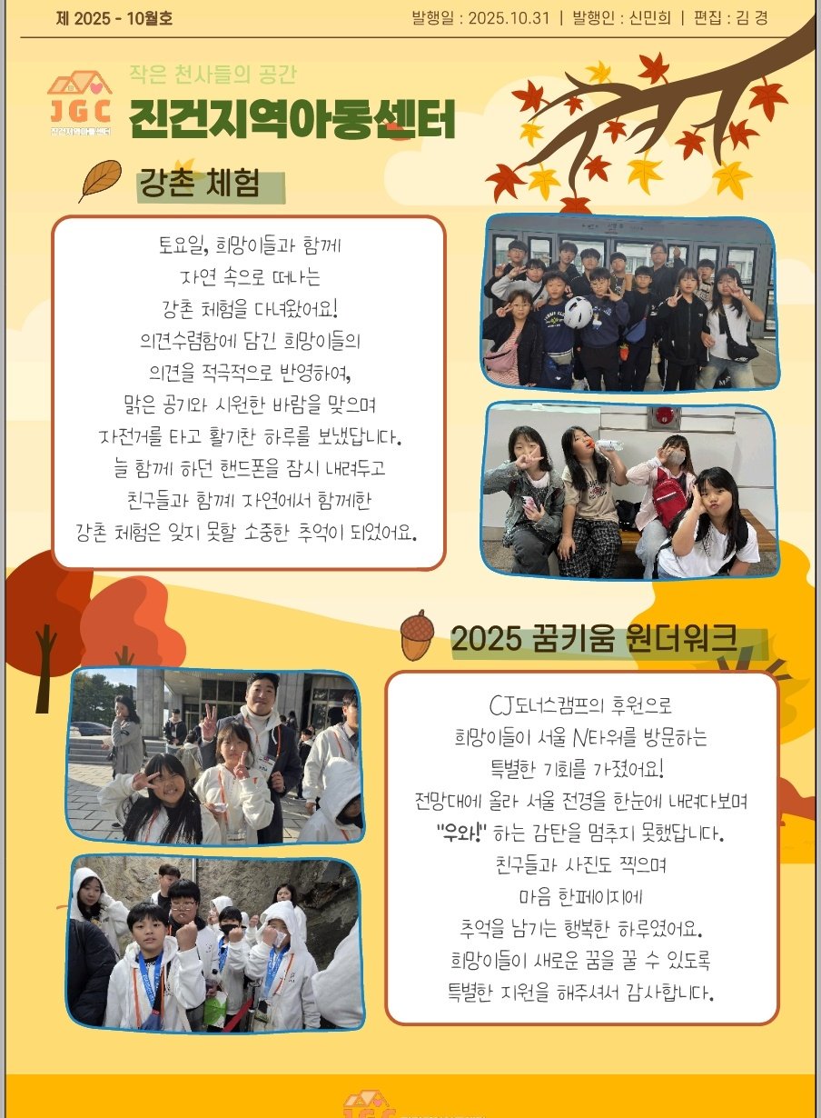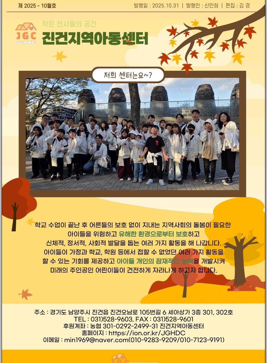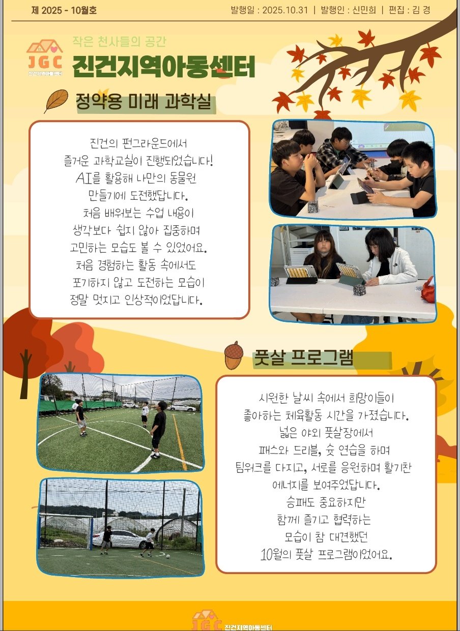 진건지역아동센터 10월달 소식지가 나왔습니다.