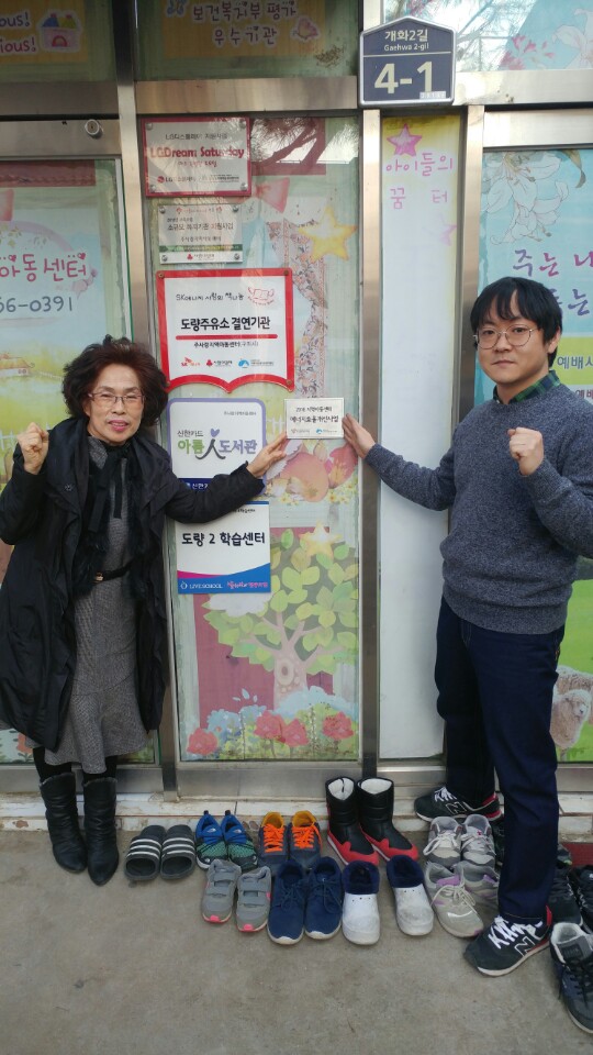 에너지 효율 공사 완료 후 현판 앞에서!!