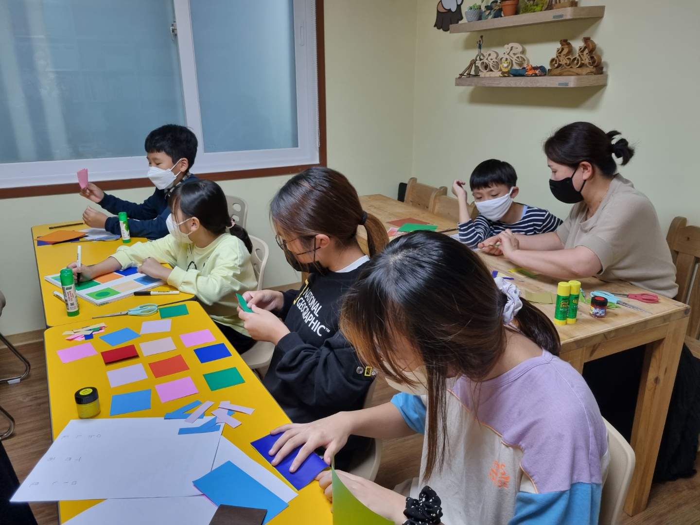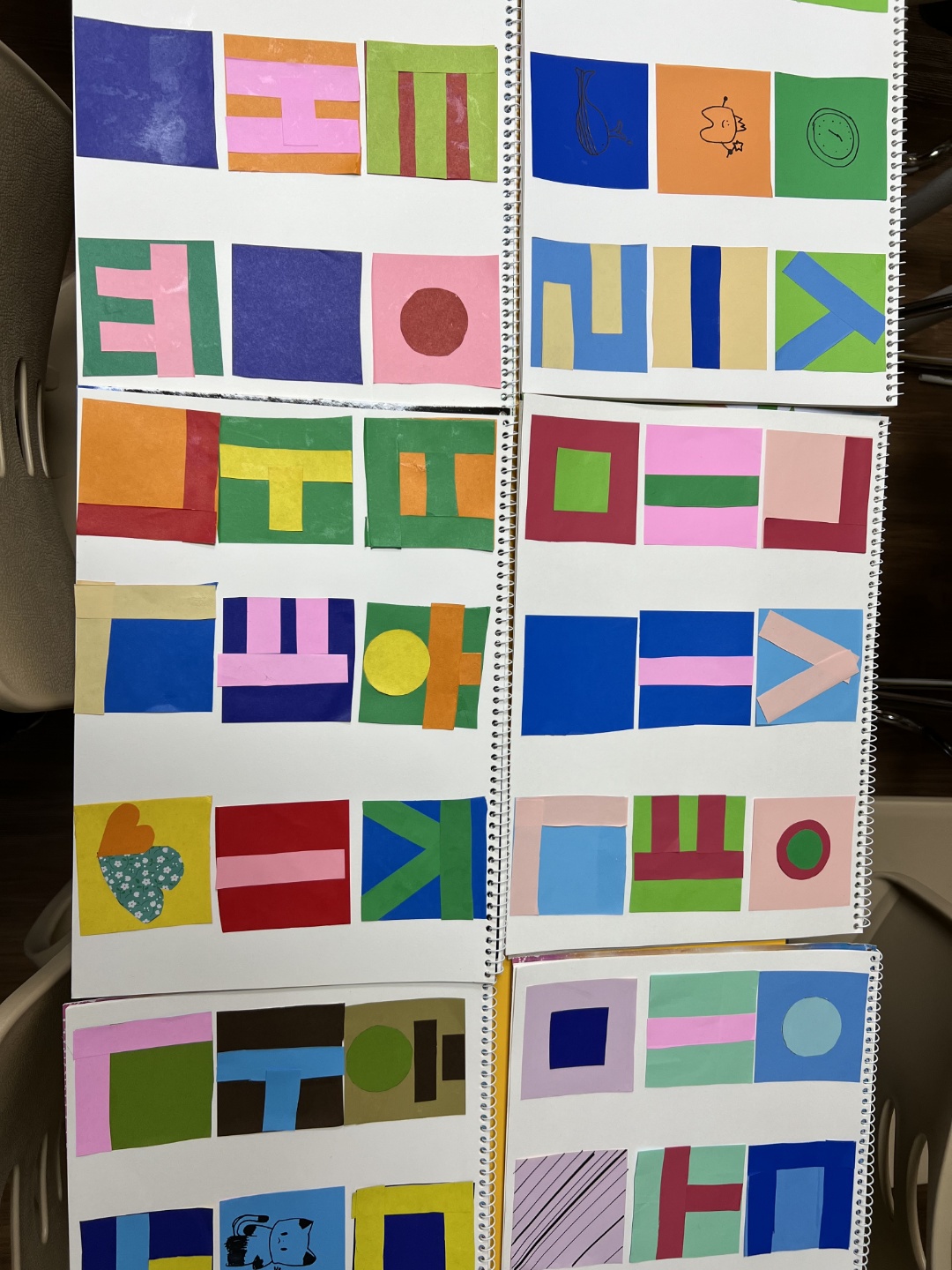 한글날 맞아 색종이로 자신의 이름꾸며 붙이기