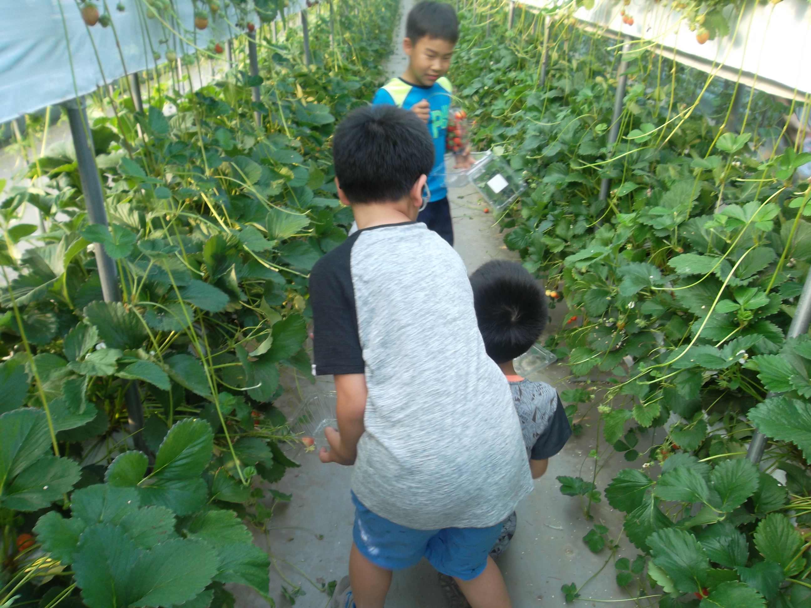 맛있는 딸기 따기 체험. 정신없이 따는 친구들