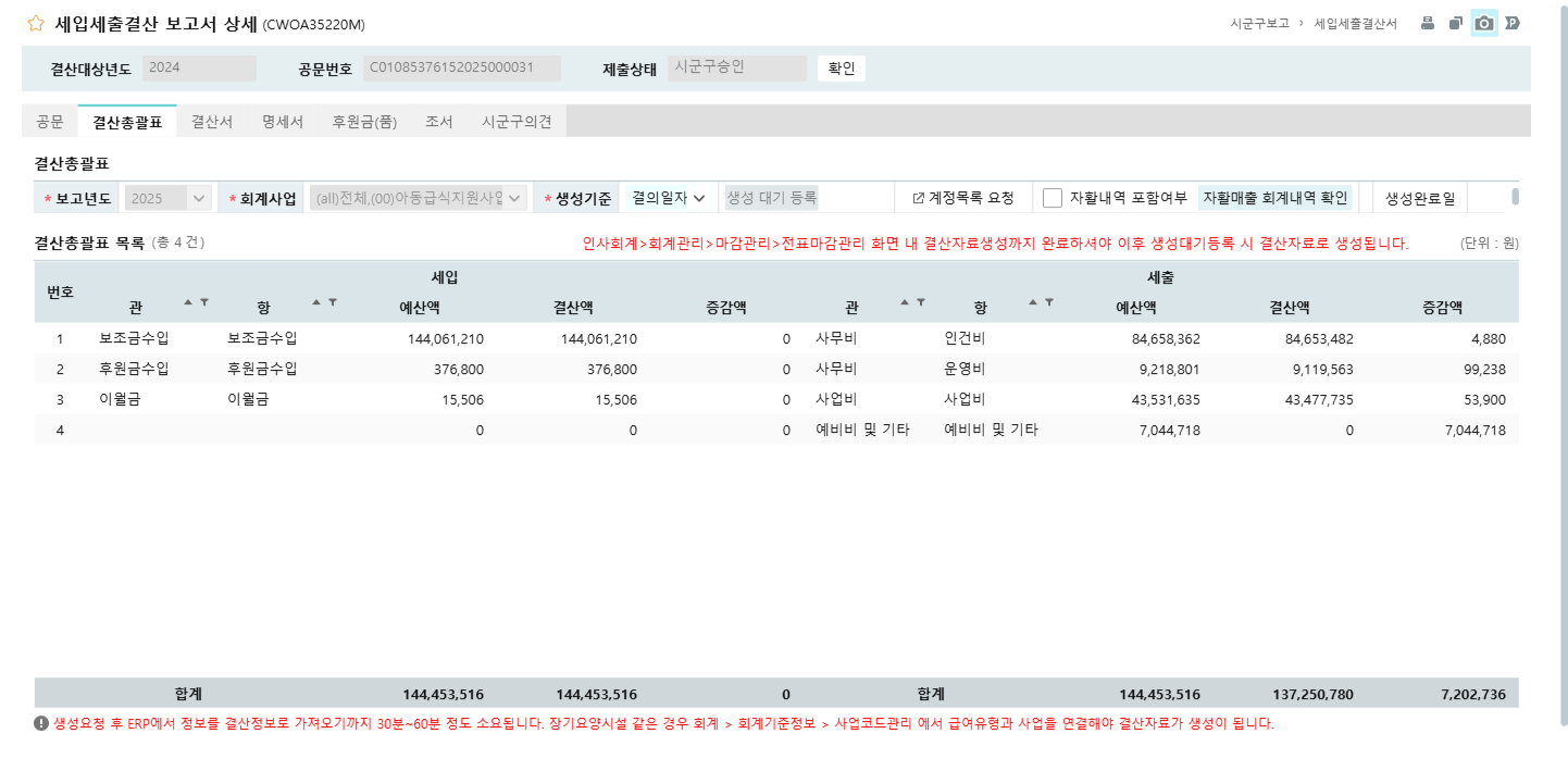 쌍책지역아동센터 2024년 결산공고
