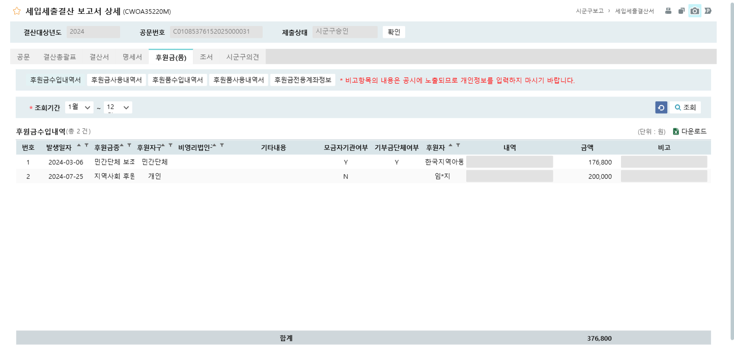 쌍책지역아동센터 2024년 후원금및 후원물품사용 공고